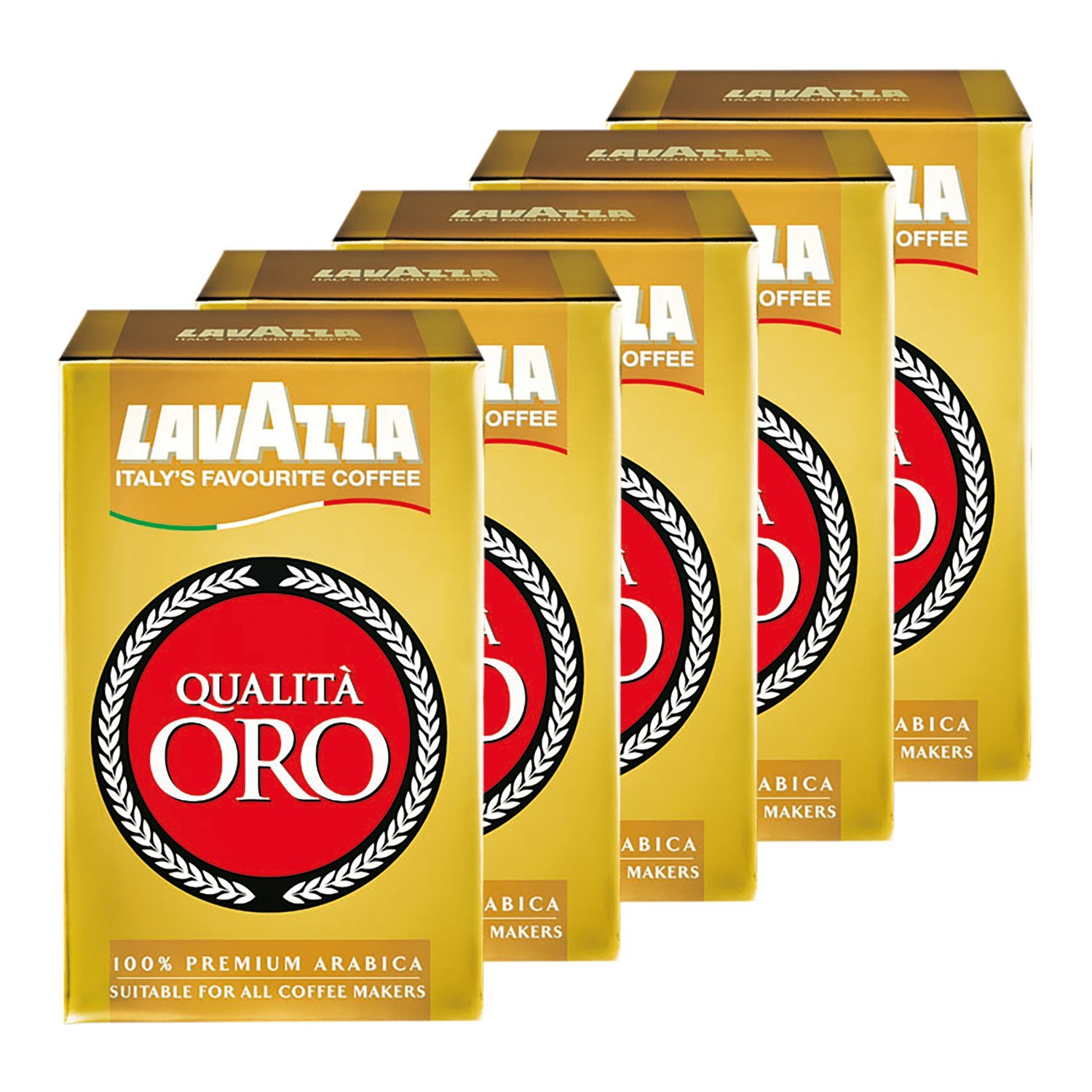 Lavazza Qualità Oro is a classic among Italian espresso traditions. Power, passion—these are the virtues that make Lavazza Qualità Oro a premium coffee from Lavazza. And it has been for over half a century. In 1956, this premium espresso was created in Turin, and since then, the knowledge for this perfect coffee has been passed down through the Lavazza family from generation to generation. Treat yourself to the experience of a truly premium Italian espresso. Qualità Oro from the traditional Lavazza house is the favorite of Italians—a coffee just like you know from the best cafés in Milan or Rome. The typical golden crema, the full body, the aromatic and smooth taste of 100 Arabica espresso, and that incomparable fragrance. An exclusive espresso for connoisseurs who demand nothing less. And the best part: you can prepare it at home. Whenever and however you like. Because Lavazza Qualità Oro is suitable for all types of preparation: enjoy your coffee by hand, in an espresso machine, a drip coffee maker, a French press, or a drip coffee maker. Whether it's an espresso, a cappuccino, or a latte macchiato, the Lavazza Qualità Oro machine guarantees a perfect cup of coffee that makes every moment of the day special. Made with 100 premium Arabica espresso for a rich and smooth taste. Roast: Medium aroma: 5 out of 5 Body: 4 out of 5 Intensity: 4 out of 5. Suitable for: filter coffee machines, moka pots, French presses, and more. Ingredients: Ground roasted coffee, 100 ArabicaLavazza Café Qualit ORO, café en grains moulus (5 x 500 g)DESCRIPTION DU PRODUIT Lavazza Qualità Oro est le classique parmi la tradition italienne Espressi, pouvoirs, passion, ce sont les vertus qui font du Lavazza Qualità Oro un café haut de gamme de Lavazza. Et cela depuis plus d'un demi-siècle. En 1956, cet expresso haut de gamme a été créé à Turin et depuis lors, les connaissances pour ce café parfait sont transmises dans la famille Lavazza de génération en génération. Offrez-vous l'expérience d'un véritable expresso italien haut de gamme. Qualité Oro de la maison traditionnelle Lavazza est le préféré des Italiens un café comme vous le connaissez dans les meilleurs cafés Milan ou Roms. La crème dorée typique, le corps entier, le goût aromatique et doux de l'espresso 100 Arabica et ce parfum incomparable Un expresso exclusif pour les connaisseurs qui ne sont que suffisants. Et le meilleur : vous pouvez le préparer à la maison. Quand et comme vous l'aimez. Parce que Lavazza Qualità Oro est adapté à tous les types de préparation : dégustez le café à la main, dans la machine à expresso, dans la machine à café, la cafetière à piston ou dans la machine à café. Comme expresso, cappuccino ou latte macchiato : la machine Lavazza Qualità Oro vous garantit un petit café qui fait de chaque moment de la journée quelque chose de spécial. Expresso Arabica 100 premium pour un goût riche et doux. Torréfaction : arôme moyen : 5 sur 5 Corps : 4 sur 5 Intensité : 4 sur 5 Convient entre autres pour : machine à café à filtre - Cafetière à moka - Cafetière à piston - Ingrédients : café torréfié moulu, 100 arabica