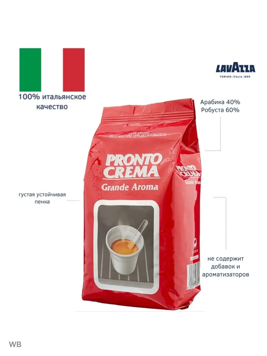 Кофе в зернах Lavazza Pronto Crema Grande Aroma - это непревзойденный вкус с ненавязчивой пикантностью, плотная бархатистая пенка, благодаря которой особенно приятен первый глоток, яркий и бодрящий аромат, продолжительное послевкусие. Сочетание зерен арабики и робусты придает кофе Лавацца Пронто Крема Гранд Арома неповторимый насыщенный вкус с легкой горчинкой. Может отлично подойти для напитков с молоком. 100% натуральный кофе. Не содержит добавок и ароматизаторов. Оригинал. Свежая обжарка. Производство: Италия.