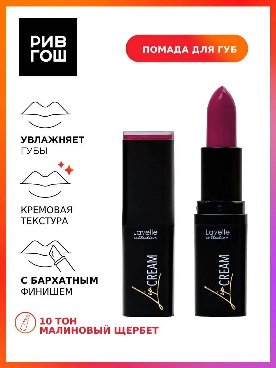 Помада обладает кремовой текстурой и насыщенным пигментом, что позволяет ей прекрасно смотреться на губах. Разнообразие оттенков: от светлых, до более темных, от нюдовых до ярких подчеркнут неповторимость вашего образа. Содержит масло ши. У нас Вы всегда сможете подобрать женскую и мужскую парфюмерию, декоративную косметику, а так же уходовые средства для волос, тела и лица. РИВ ГОШ вдохновляет дарить подарки каждый день. Помада для губ Lip Cream, 10 малиновый щербет - 1 шт. Помада для губ не теряет насыщенности цвета в течение нескольких часов, питает и ухаживает за вашими губами без пересушивания. Губная помада гарантирует качественное и комфортное нанесение. Мы предлагаем большое многообразие оттенков на любой вкус, позволяя вам экспериментировать с образом ежедневно. В нашей линейке вы найдете как яркие, так и нюдовые тона, которые прекрасно подойдут как для офисных будней, так и для вечерних выходов. Разные текстуры на любой случай сатиновая, матовая или глянцевая, обеспечат комфорт и легкость при использовании. Помада для губ придаст вашему образу безупречный вид и уверенность в себе.