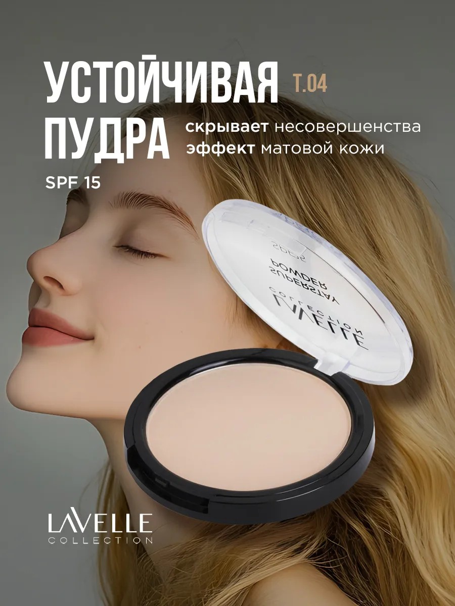 Lavelle Collection Пудра компактная устойчивая SPF15, тон 04 натурально-бежевый