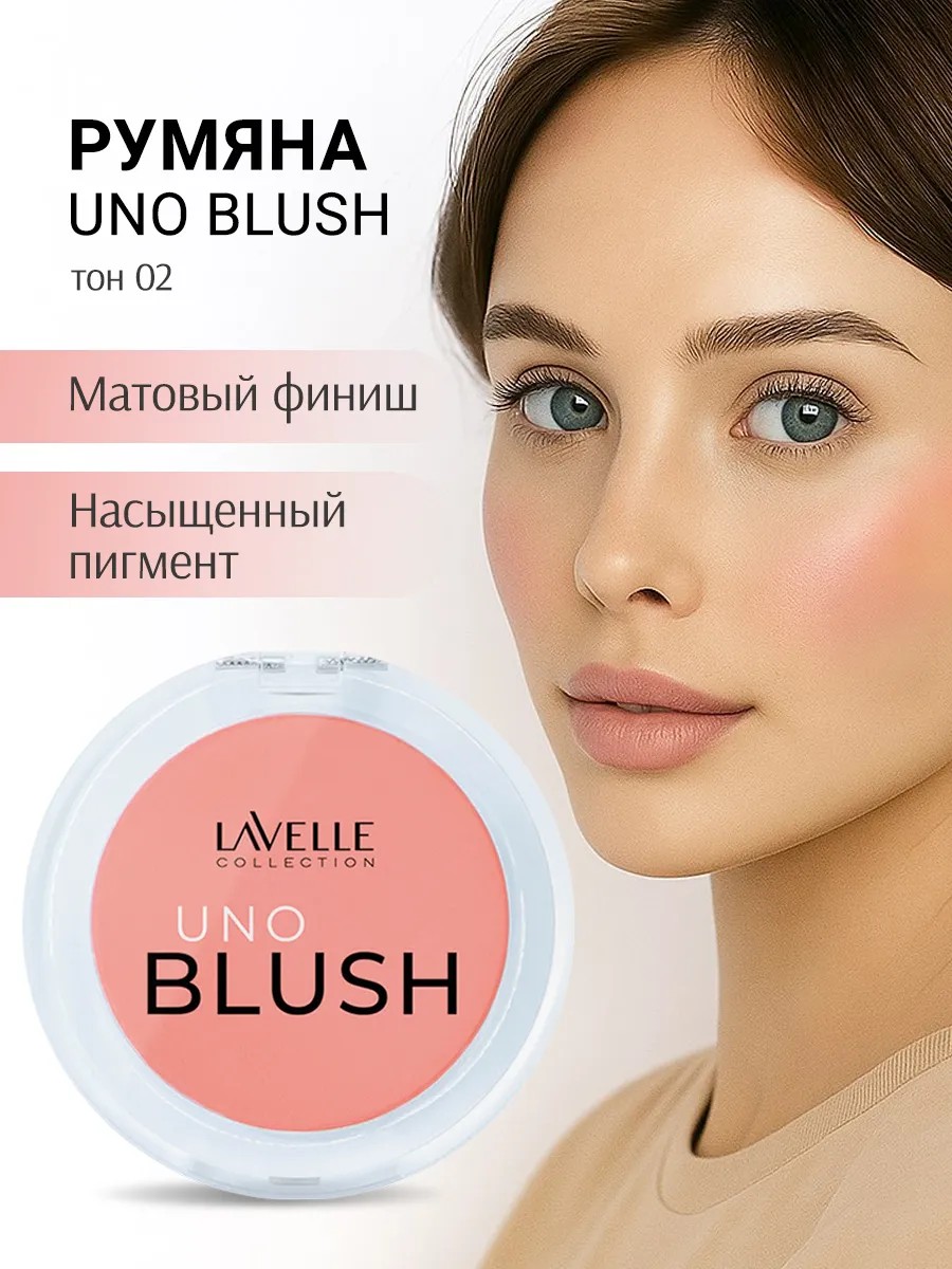Румяна для лица UNO BLUSH косметики LavelleCollection — это профессиональные пигментированные румяна с насыщенными оттенками и матовым финишем, которые держатся до 12 часов!