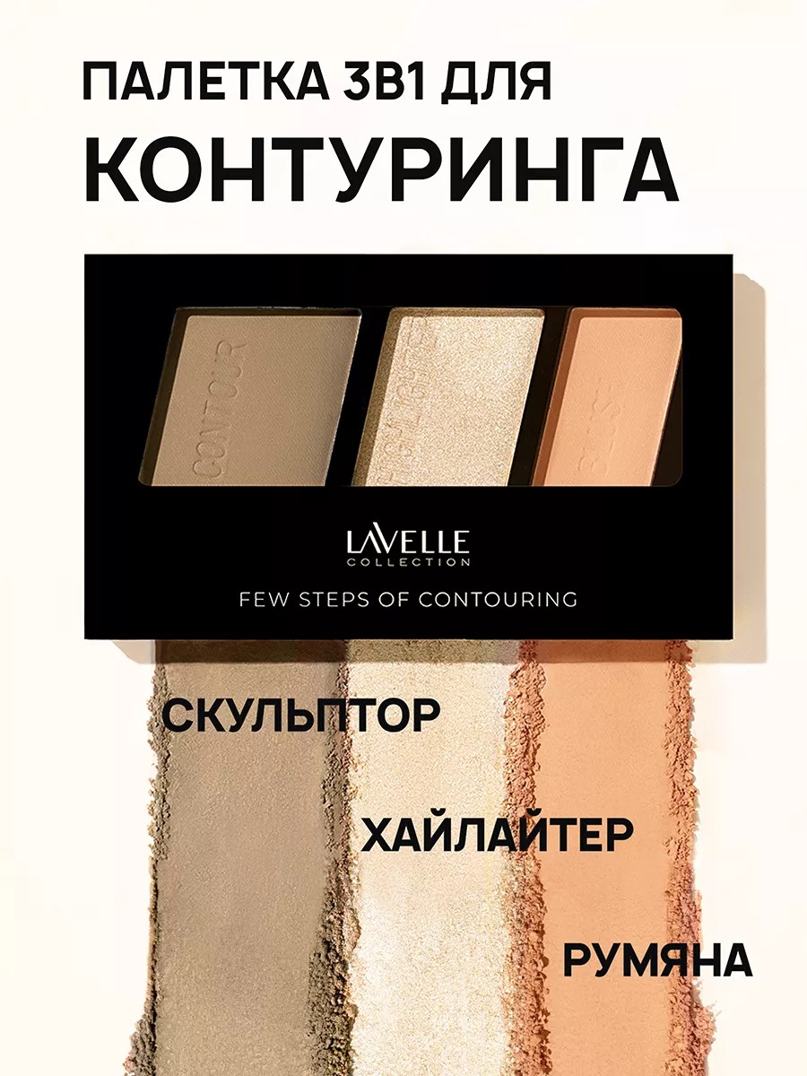 The new multifunctional "Few Steps" contouring palette from Lavelle Collection will become your indispensable assistant in creating the perfect makeup. It combines a contouring foundation, blush, and highlighter—all the essential tools to enhance the beauty of your face.