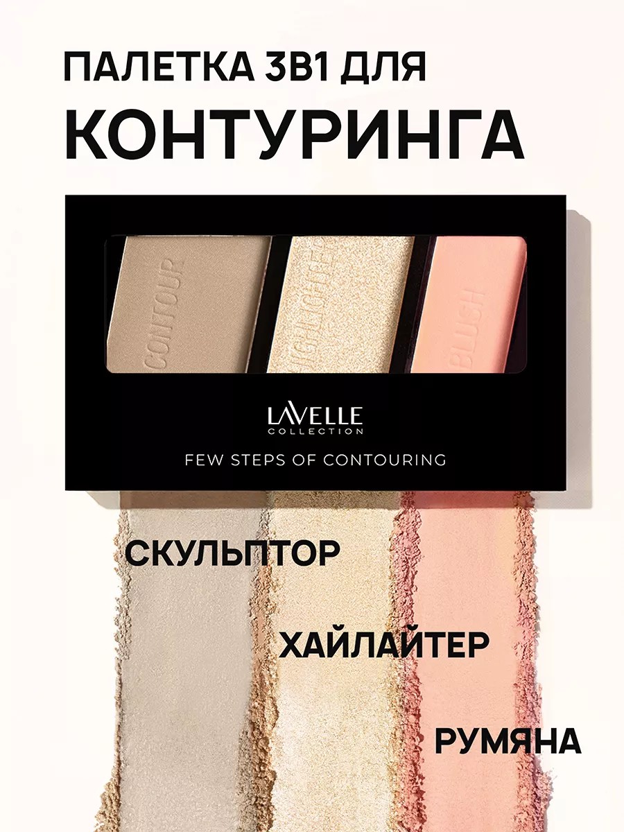 Новая мультифункциональная палетка для контуринга лица "Few Steps" бренда косметики Lavelle Collection станет вашим незаменимым помощником при создании идеального макияжа. Несколько шагов для безупречного результата в одной палетке. "Few steps" - многофункциональный актуальный трендовый продукт для контуринга. Он объединяет в себе скульптор, румяна и хайлайтер – все необходимые инструменты для подчеркивания красоты вашего лица. Набор для контуринга - это не просто часть косметики для макияжа, а возможность создать уникальный образ и подчеркнуть свою индивидуальность. Палетка для макияжа помогает создать правильный контуринг, выделить скулы и подчеркнуть рельеф лица. Скульптор для лица и румяна создадут идеальные пропорции. Сочетание румян и хайлайтера поможет придать вашему лицу здоровый и свежий вид. Хайлайтер для лица сухой также добавит изысканное сияние, подчеркивая лучшие черты вашего лица. Он имеет универсальный оттенок, поэтому его можно использовать как блестящие тени для глаз, а также как хайлайтер для тела. Розовые румяна универсальны и подойдут разному типу лица и возрасту. Эта палетка для лица подходит для всех типов кожи, включая сухую. Палетка для контуринга станет незаменимым помощником как для повседневного макияжа, так и для особых случаев. Она легко помещается в вашу косметичку, что делает ее удобной для использования в любой ситуации.
