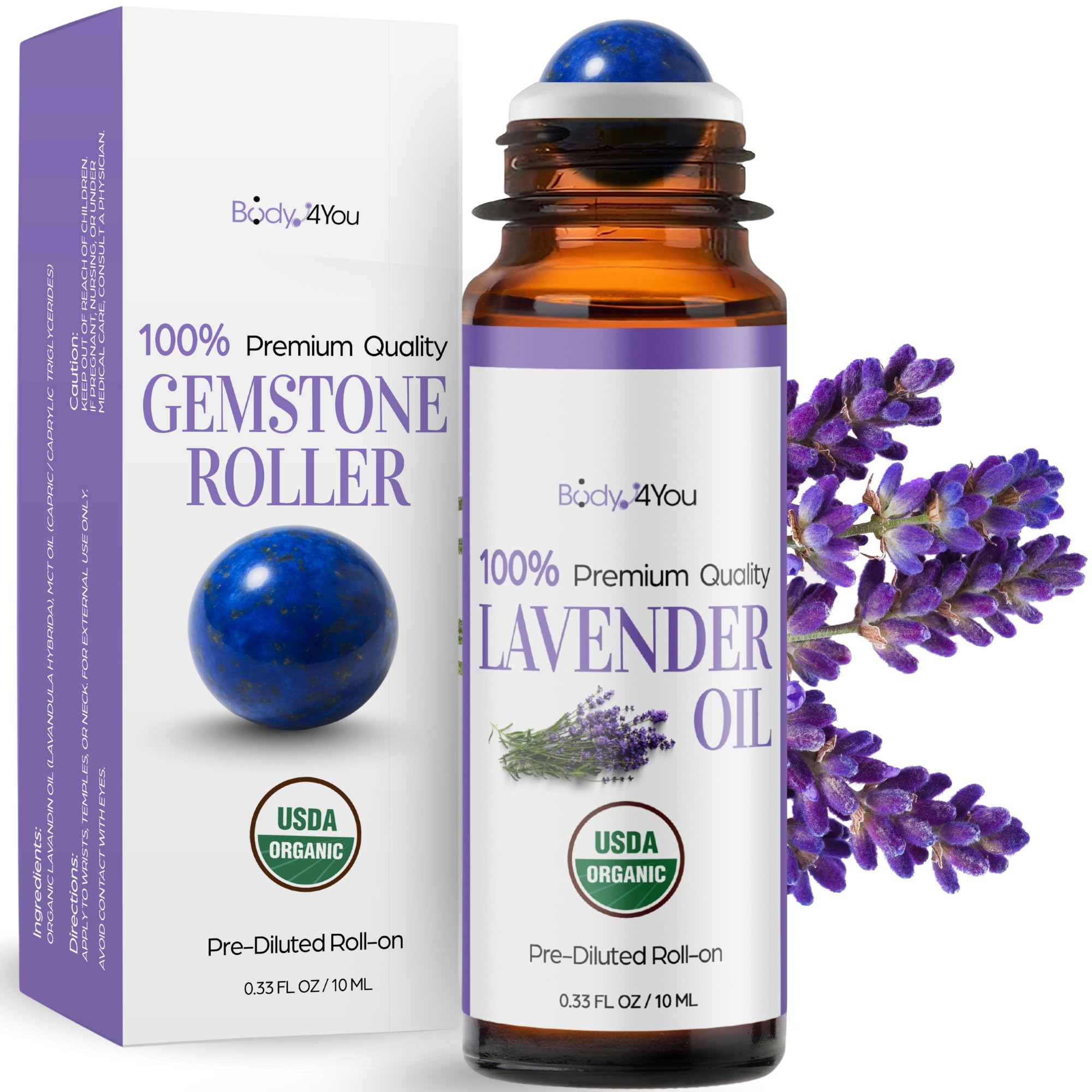 CERTIFIED ORGANIC USA BOTTLED: USDA Organic Ingredients, Vegan and Cruelty Free. USA Certified Facility With Small Batch Filling and Safety Seals. Traceable Sourcing. No Parabens, Mineral Oil, Dyes, or Synthetic Fragrances. Contains Coconut Derivative. SIMPLE DAILY ROUTINE: Apply After Shower on Damp Skin for Best Absorption. Roll on Pulse Points Before Bed for Sleep Support. Keep Bottle on Nightstand or in Purse for Consistent Use. Perfect for Nightly Rituals, Travel, Meditation, and Stress Relief. PRECISION LAPIS LAZULI STONE ROLLER: Smooth Stone Glides Without Tugging for Comfortable Application. Cooling Tip Soothes Areas and Reaches Tight Spaces Like Temples and Pulse Points. Amber Glass Protects Potency. Secure Cap Prevents Leaks During Travel. TARGETED ROLL ON APPLICATION: Glide Stone Roller on Wrists and Behind Ears for Sleep Prep. For Stress Relief Roll on Temples and Neck. For Calm Focus Apply to Pulse Points and Inhale Deeply. For Bedtime Roll on Soles of Feet. Stone Glides Smoothly. RESTFUL SLEEP BEDTIME SUPPORT: Natural Properties Promote Relaxation and Prepare for Restful Sleep. Roll on Wrists and Behind Ears for Sleep Prep. Apply to Temples and Neck for Soothing Calm. Use on Pulse Points and Feet for Tranquil Bedtime Ritual. ORGANIC LAVENDER OIL BLEND: USDA Certified Pre-Diluted in MCT Coconut Oil. Natural Lapis Lazuli Stone Roller in Amber Glass Bottle 10ml. Direct Topical Use for Wrists, Temples, Neck, Ears, Pulse Points. Hexane Free, Vegan, Fast Absorbing, Ready to Use.