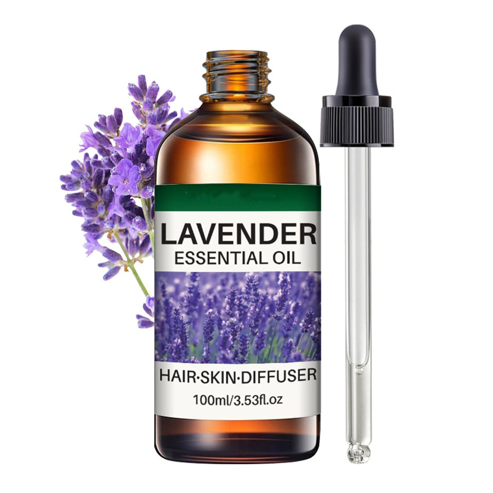 Lavender Essential Oils Natural Lavender Oil with Dropper for Diffuser Hair Care Face Skin Care Aromatherapy Scalp and Body Massage Soap and Candle Making Long Lasting Scents Easy Use 3.53oz