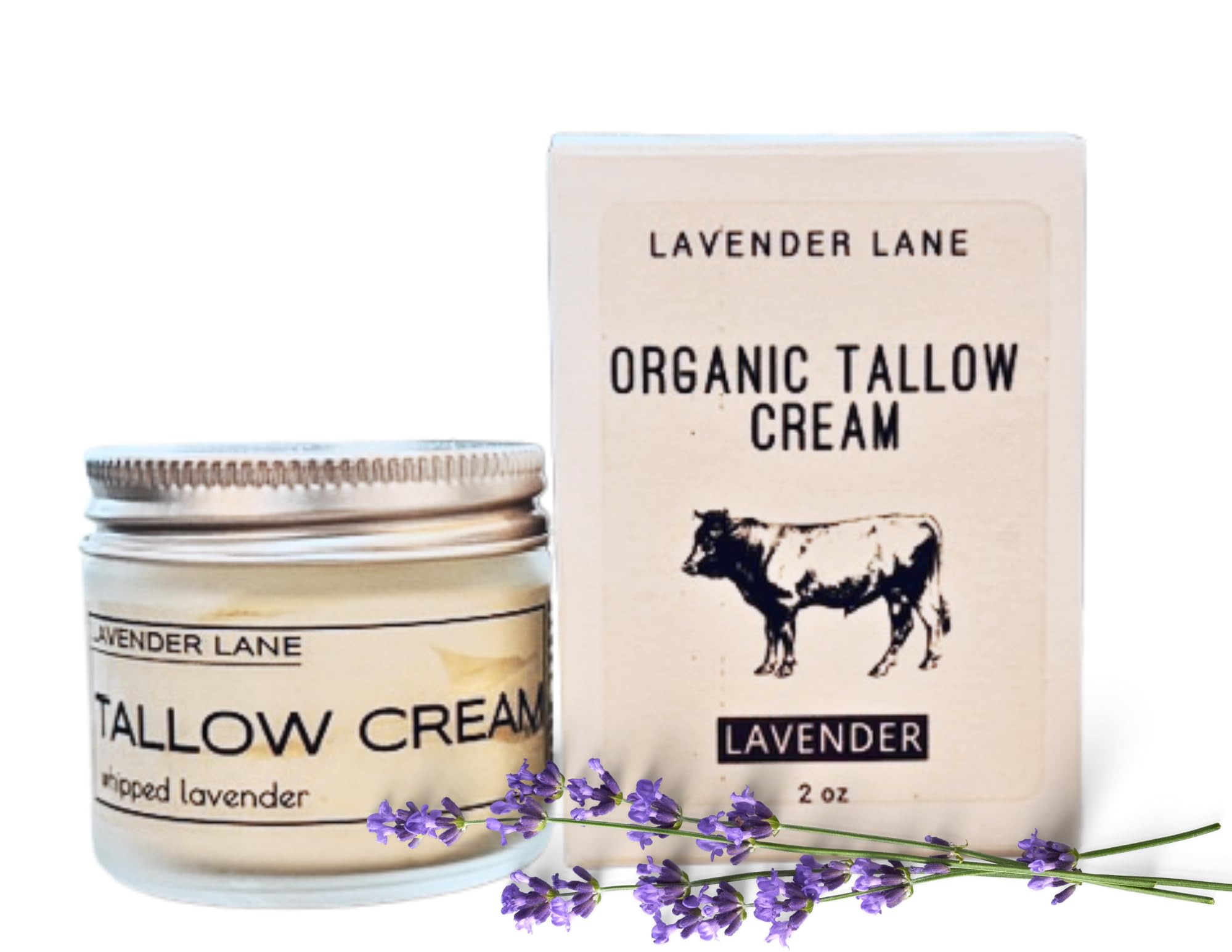 LAVENDER LANE Organic Whipped Tallow Cream - Herb Infused Olive Oil 100% Grass Fed Beef Tallow Face and Body Moisturize (Lavender)