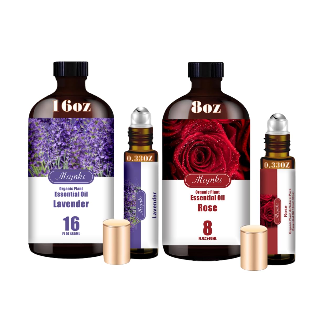 Lavender & Rose Essential Oils Set 16oz & 8oz Pure Natural Scent for Diffusers Aromatherapy Luxury Skincare Romantic Gift Set for Home Bath Massage & Self Care
