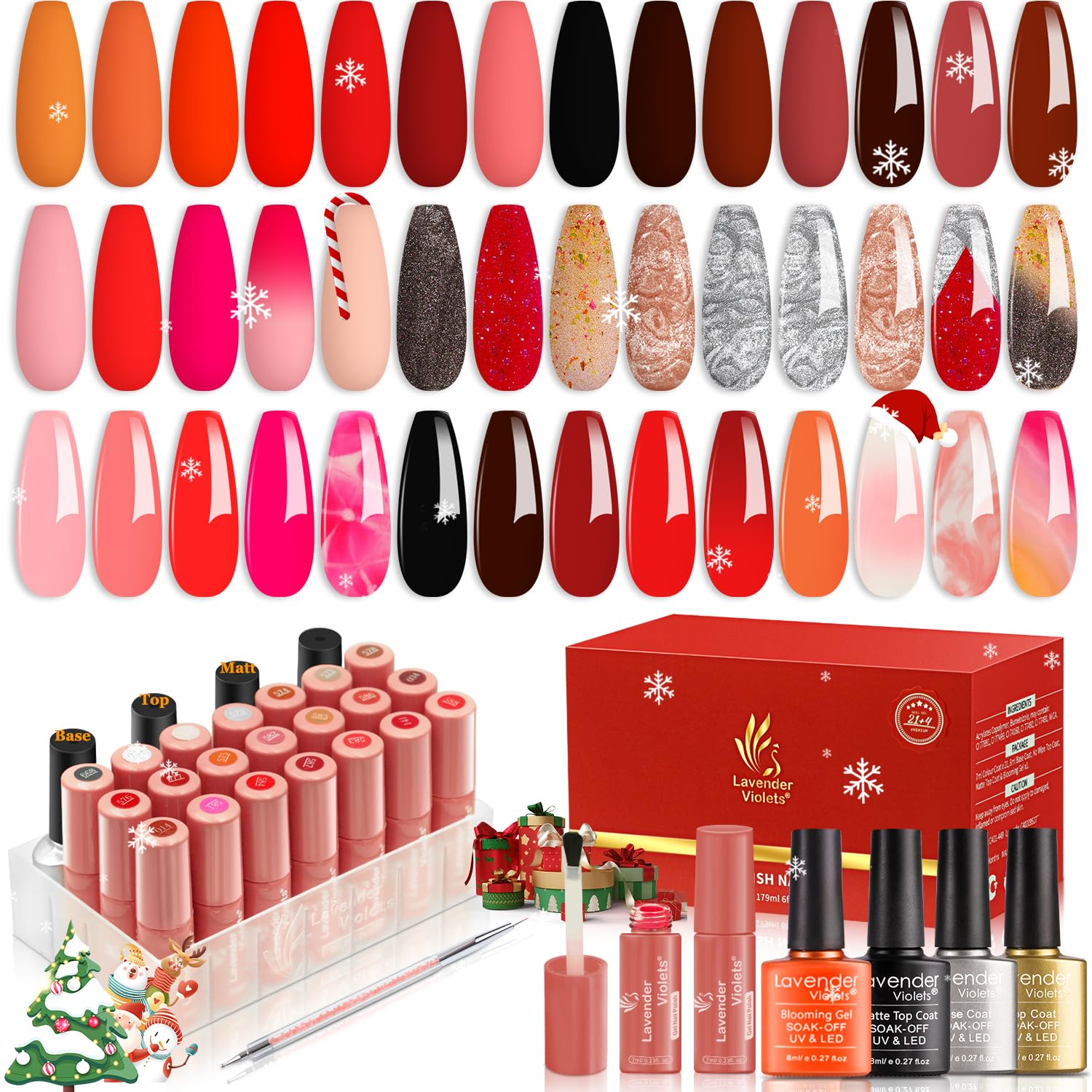 Lavender Violets 25 Pcs Gel Nail Polish Rose Gold Pearl Shell Cat Eye Mulit Effect kit Blooming Gel Base Coat Glossy n Matte Top Coat Dotting Drawing Nail Brush Manicure Soak Off UV LED Varnish C401 Fashion Party