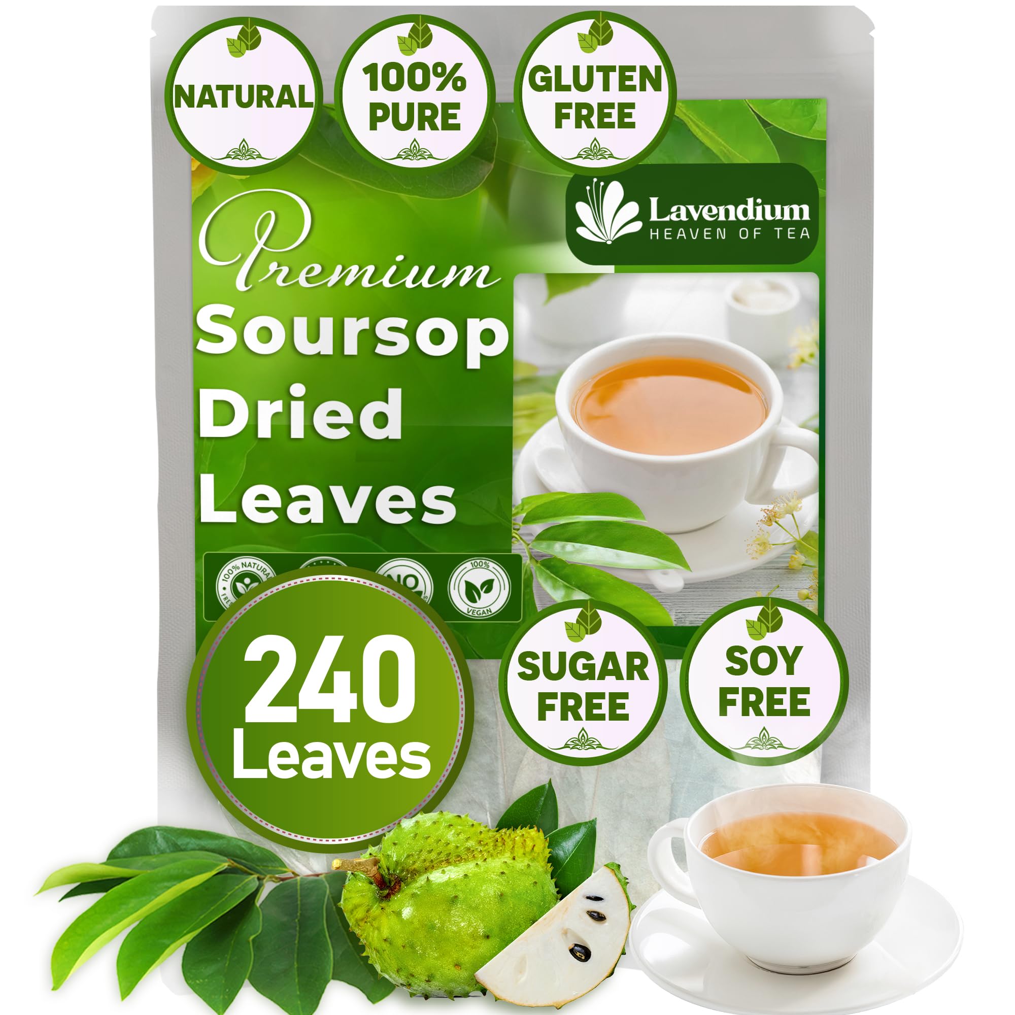 Lavendium 240+ Premium Soursop Graviola Dried Leaves 240-260 Natural Leaves Whole Soursop Leaves Wildcrafted Graviola Soursop Hoja Guanabana Soursop Loose Leaf Herbal Tea No Gluten Vegan Soursop Leaves 240 Bags