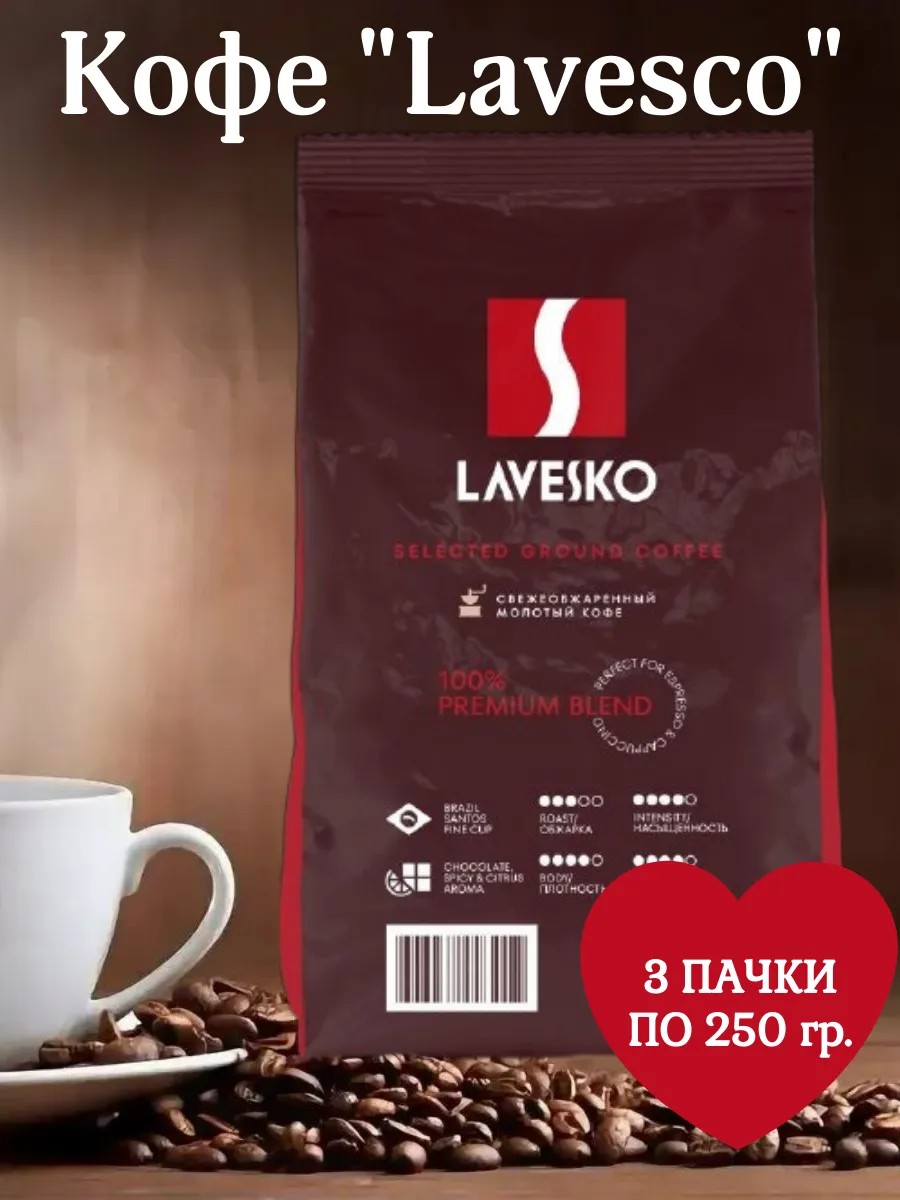 LAVESCO Coffe Кофе натуральный жареный молотый, 3 пачки по 250 гр.