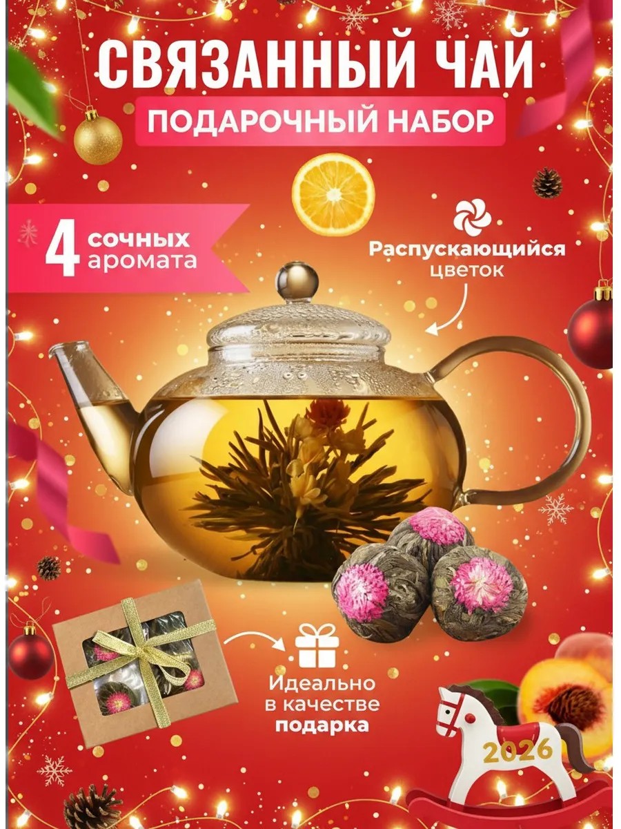 | Комплектация | чай связанный 4шт шарика; подарочная коробка; лента |