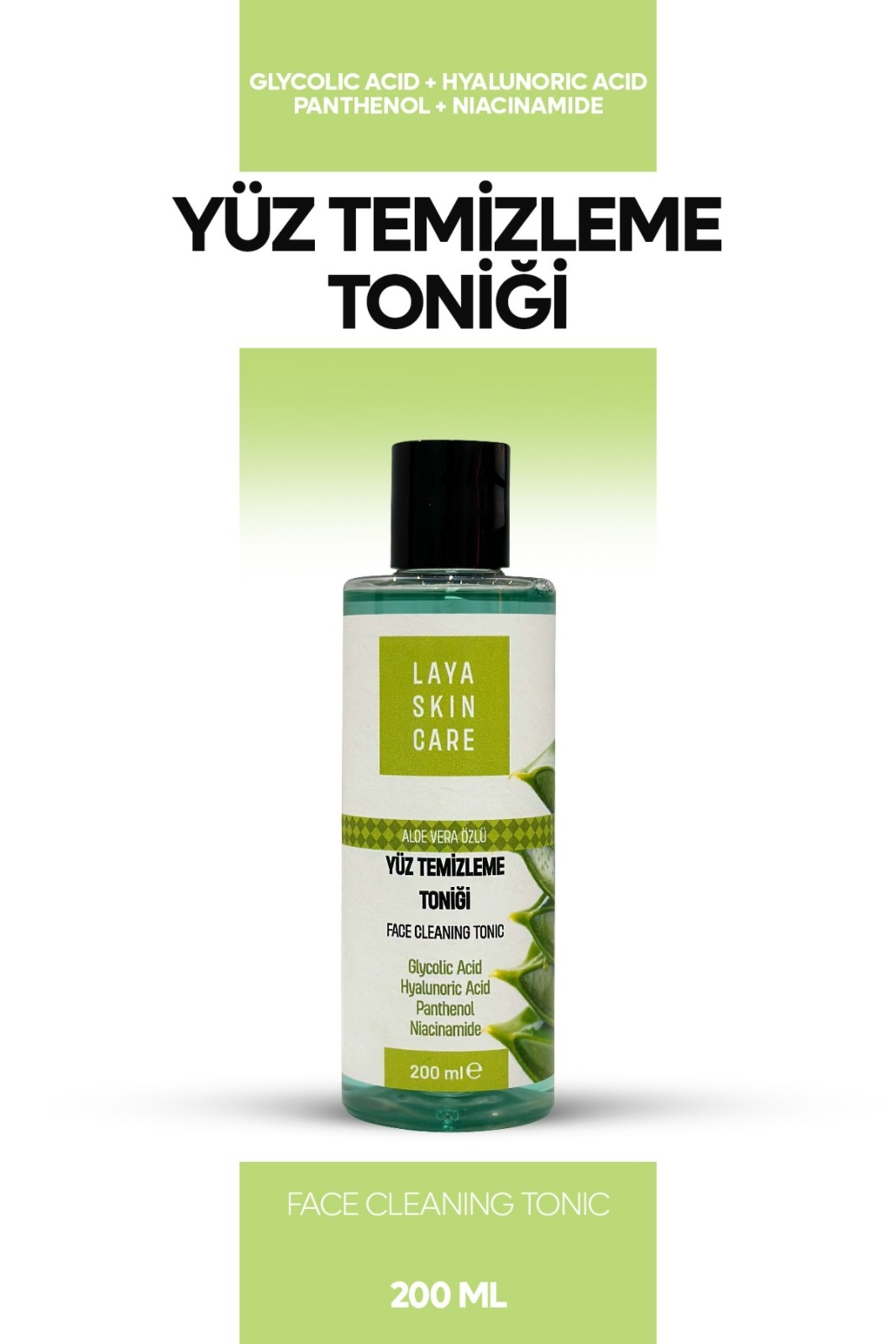 • GLYCOLIC ACID HYALUNORIC ACID PANTHENOL NIACINAMIDE ALEO VERA Dogal Içerik Vegan 200 ml