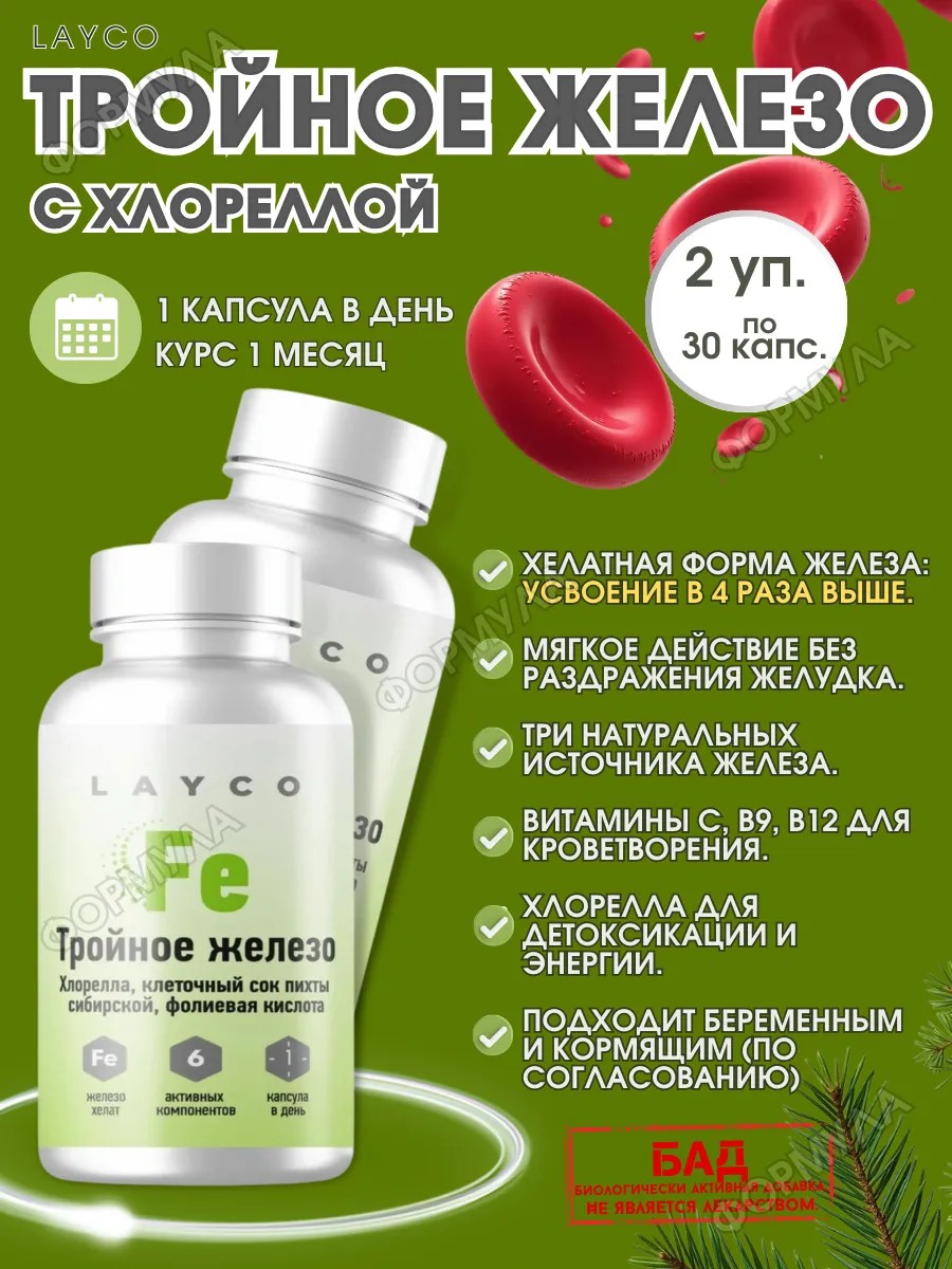 layco Тройное жeлезо с xлореллой 30 капс.х2 уп.