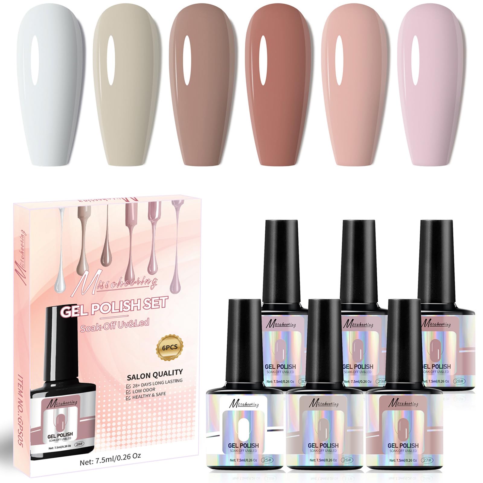 ???SPECIAL NOTE?: Gel Nail Polish is for nails only. Avoid contact with eyes, mouth and skin. In case of accidental contact, rinse immediately. If redness and itching occur, stop using the product. Keep this product out of the reach of children. ???IDEAL GIFT FOR HER?: Gel nail polish set come in a beautiful gift box. They are perfect for daily life, work, parties or ceremonial events such as birthdays, holidays, anniversaries, Christmas, Valentine's Day, Mother's Day gifts. ???HEALTHY & EASY TO APPLY?: This gel nail polish set does not contain harsh ingredients, safer for nail beds. It applies smoothly and removes easily without damaging your nails for professional results at home, giving your nails a lustrous, salon-quality finish. ???HIGH QUALITY GEL NAIL POLISH?: Our soak-off gel nail polish ensures long lasting nails that are resistant to chipping and fading, it requires a base and top coat and is cured under LED/UV lamps.LED lamps average 1-2 minutes, UV lamps 2-4 minutes. The most fashionable style colours, full but natural, for parties or professional applications. ???GEL NAIL POLISH SET?: You will receive 6 x Gel Nail Polish (7.5ml/bottle). Our 6 colour nail polish gel set offers a range of stylish and vibrant colours to match any style or occasion. As a beginner, you can have beautiful nails without much practice.