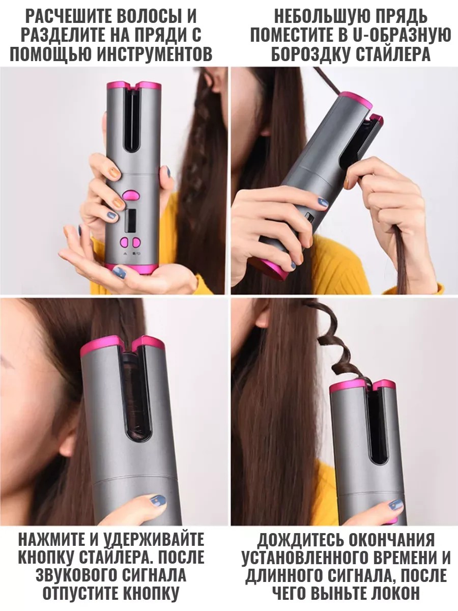 Автоматический безпроводной мультистайлер для создания красивых укладок волос всего за несколько минут. Мультистайлер аккуратно завивает прядь волос в спираль с помощью специальной керамической камеры, не нанося вреда им. Прядь прогревается равномерно, и через непродолжительное время вы получаете прекрасные локоны. Мультистайлер позволяет контролировать направление завивки, температуру и время нагрева, чтобы создать разные укладки. Устройство быстро и легко сигнализирует о завершении завивки, обеспечивая равномерный результат. Просто поместите прядь в камеру, выберите настройки, и ваши локоны готовы! Без проводов и сложных настроек - просто одно нажатие кнопки, и плойка активируется. Она автоматически нагревается до нужной температуры с шестью вариантами времени нагрева. Устройство снабжено ЖК-экраном для отображения данных и функцией автоматического отключения при запутывании волос. Мультистайлер легкий и компактный, идеально подойдет в качестве подарка для родных и близких. Кроме того, он удобен в путешествиях, в отпуске или на работе, так как заряжается через USB от различных устройств.