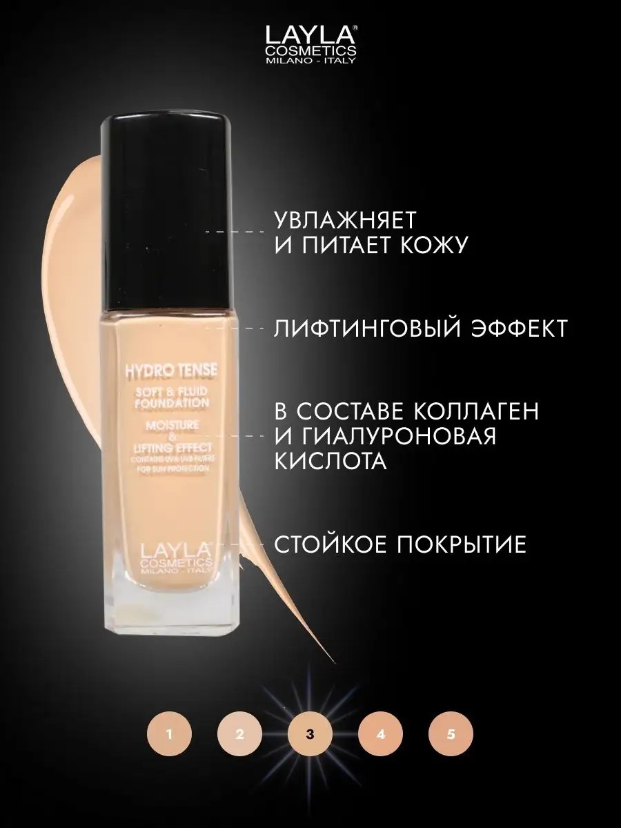 Эта тональная основа - флюид. Вы не почувствуете, что у вас на лице тональный крем, и никто не заметит, что ваши несовершенства замаскированы. Роскошная увлажняющая тональная основа – флюид создает на поверхности кожи тончайшую вуаль, которая скроет следы усталости, веснушки, тоненькие морщинки, покраснения и постакне. Если у вас нормальная или жирная кожа, лицу не хватает тонуса, вы не любите тяжелые текстуры, есть видимые несовершенства - идеальный выбор для вас Тональная основа с лифтинговым эффектом Hydro Tense Foundation от Layla Cosmetics Италия. Увлажняющая тональная основа для лица - флюид подходит для обладательниц нормальной и жирной кожи. Кроме отменных маскирующих качеств, тональная основа отлично увлажняет и питает кожу, даря ей ощущение комфорта в течение длительного времени. При этом покрытие скрывает даже видимые недостатки и создает эффект лифтинга на несколько часов. Уникальное сочетание тональник флюид – вы не ощущаете на лице ничего, никто не видит, что на вас тональное средство – при этом ваша кожа выглядит идеально ровной и подтянутой. Комфортную текстуру высокой степени покрытия при необходимости можно сделать более легкой при помощи влажного спонжа или кисти. Тональное средство подходит для проблемной кожи всех видов, для жирной кожи лица, таже это матирующий тональный крем от пигментации. Тональный крем для лица обладает самой востребованной легкой шелковистой текстурой. Получается и тоналка для лица - классика жанра крем перед макияжем - с содержанием тонирующих пигментов, который обычно служит для получения оптического эффекта: маскирует покраснения и несовершенства, выравнивает тон и рельеф кожи. И увлажняющий крем питательный.