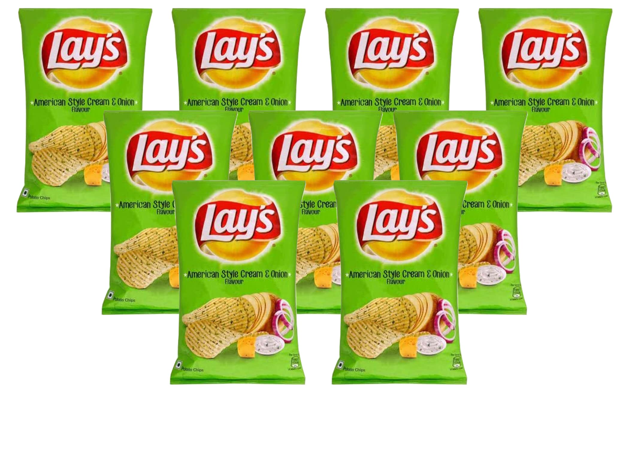Lays American Cream & Onion 50g (Pack of 9) Cream & Onion Flavour Crunchy Snacks Perfect Combination of Sour and Cream