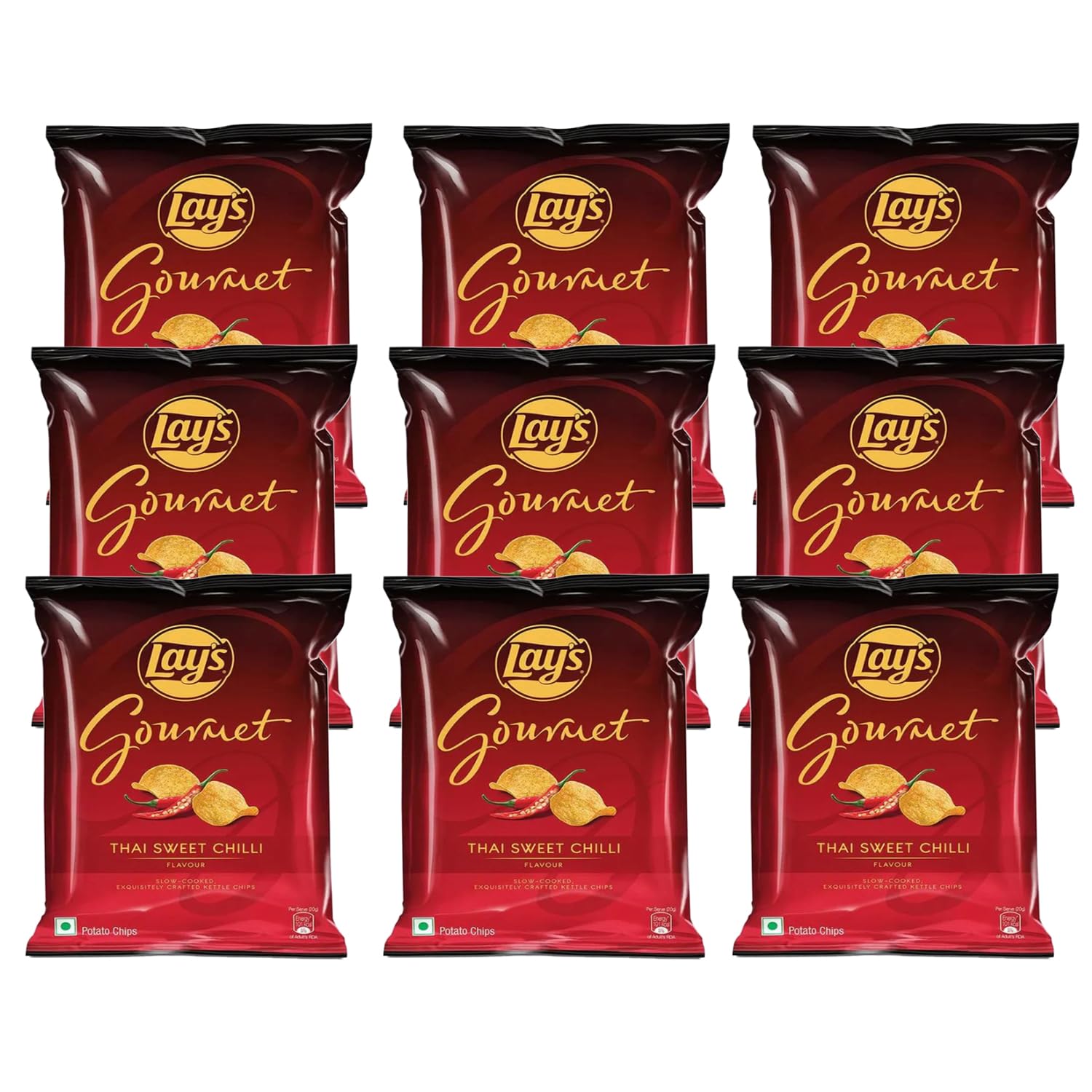 Lays Gourmet Potato Chips (Thai Sweet Chilli) Flavor (36 Gram) - Slow-Cooked Potato Chips Snacks (Pack of 9)
