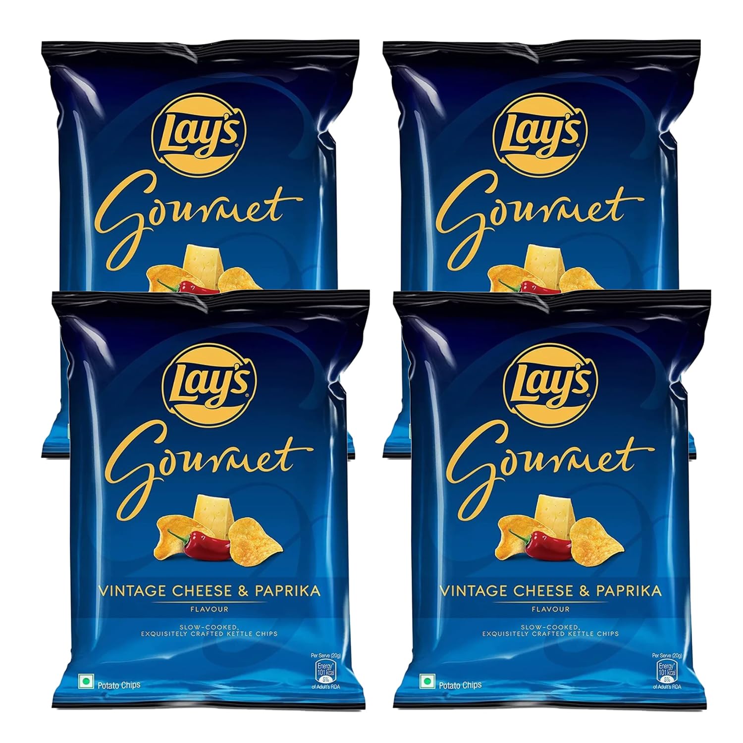 Introducing the new Premium Potato Chips, offering a rich crunch, cheesy, and a paprika flavorful bite! Crafted from meticulously selected, high-quality potatoes, Lay's Gourmet chips are infused with generous seasoning and unique blends of exotic ingredients, delivering a sensory delight with every bite. Each thickly sliced chip boasts a golden curl, offering an indulgent experience filled with lip-smacking flavors and enticing aromas, perfect for celebrating moments of indulgence. These chips are more than just cooked they are crafted to perfection, embodying the essence of fine snacking. Whether you're enjoying a movie night, traveling, or simply unwinding with friends or alone, these chips elevate any moment. Featuring the tantalizing Vintage Cheese and paprika flavor, each chip is slow-cooked to achieve an exquisite crunch, ensuring a satisfying texture in every bite. Crafted with handpicked quality potatoes, there's no compromise on taste or quality, a premium snacking experience. Ideal for cocktail parties, special occasions, or leisurely evenings, these chips pair seamlessly with cheese, dips, or your favorite beverages. Elevate your snacking experience with Lay's Gourmet Premium Potato Chips, and indulge in moments of pure culinary bliss. Features: Vintage Cheese and paprika Flavor Slow-cooked, exquisitely crafted kettle chips Handpicked quality potatoes An excellent snack for cocktail parties that pairs well with cheese dips INGREDIENTS Lays ChipsIDEAL FOR EVERY OCCASION: An exceptional premium snack, perfect for special occasions, beautifully complementing wine, cocktails, cheese, and dips for a delightful culinary experience. PREMIUM QUALITY: Lay's selects handpicked quality potatoes for every bag, ensuring no compromise on quality, delivering consistently delicious chips you can trust. CRAFTED CHIPS: Expertly slow-cooked kettle chips deliver a golden crunch, meticulously crafted for superior taste and texture. SPICY FLAVOUR: Lays Gourmet Vintage Cheese Paprika chip's feature an exquisite flavor, artfully enriched with distinctive spices for an unforgettable taste sensation. HARD-BITE CRUNCH: Thick potato slices, meticulously slow-cooked to achieve the perfect golden curl and a distinctive, satisfying crunch.