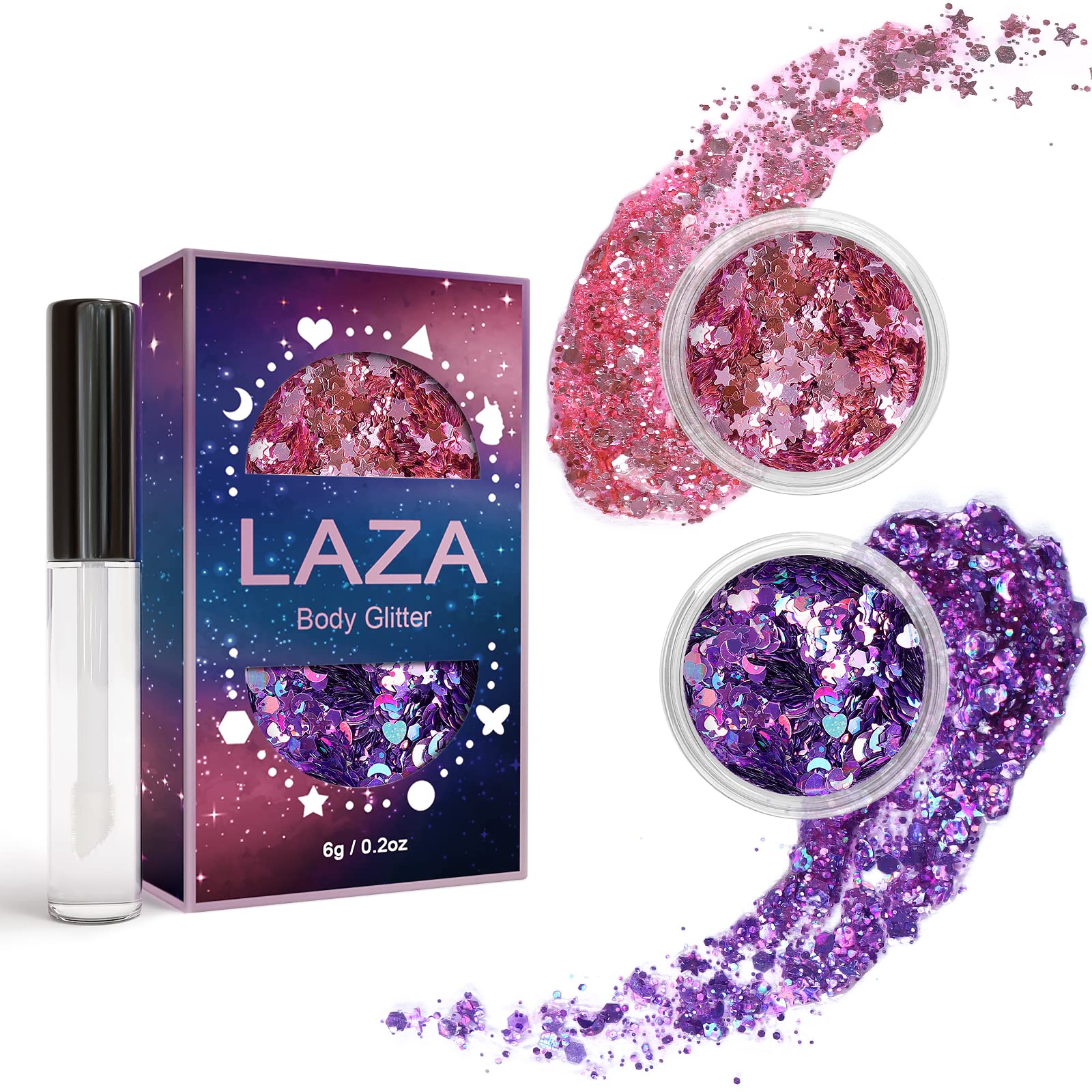 Quality Guarantee: If you have any questions about the product, please send us a message for a solution.In Order to Give You A Better Shopping Experience, We Will Try Our Best To Help You Solve The Problem from the Perspective of the Customers.Widely Application: The Cosmetic Chunky Body Glitter are Perfect for your face paint, Rave Makeup, Body Makeup, Euphoria Outfit and So On.So Applies to Nail Art and Resin Crafts.Perfect Rave Accessories for Coachella Essentials, Euphoria Party, Carnival Costumes, Disco Accessories, Music Festival Outfits, Concert Essentials, and So On.The sequins that change with the light will make you focus of the crowd.It is a very suitible Holiday Gift for Women, Girls, Cheerleaders.Safe convenient: our makeup glitter and glitter Primer are Skin-Friendly.Gently Apply Glue and Put Sequins On It, which is very convenient to use and Carry.And you only need to water with what or use shower gel to remove it easy.Laza Body Glitter: 20 Glitter Makeup Kits Mix Various Size of Glitter and Fine Powder, Rich Colors, There are laser Series Silver Purple, i.e. Blue Green Gold Yellow, and Even Glow in the Dark Glitter.In addition to the difference in color, the mixing of sequin shapes is so different.There are stars, Heart, Hexagon, Butterfly, Unicorn, and other shapes.You can choose the shape or color you like.Perfect for Lover Outfit: Laza 2 Jars Purple and Pink Body Glitter is the Preference for Concert Lover Outfit Accessories for Women to Create Glitter Makeup.Serves it as face glitter makeup, hair glitter, glitter eyeshadow, etc. What so great concert outfit accessories and festival outfit accessories.Quality Guarantee: If you have any questions about the product, please send us a message for a solution. In order to give you a better shopping experience, we will try our best to help you solve the problem from the perspective of the customers. Widely application: The cosmetic chunky body glitter are perfect for your face paint, rave makeup, body makeup, euphoria outfit and so on. It also applies to nail art and resin crafts. Perfect rave accessories for coachella essentials, euphoria party, carnival costumes, disco accessories, music festival outfits, concert essentials, and so on. The sequins that change with the light will make you focus of the crowd. It is a very suitable holiday gift for women, girls, cheerleaders. Safe Convenient: Our Makeup glitter and glitter primer are skin-friendly. Gently apply glue and put sequins on it, which is very convenient to use and carry. And you only need to wash it with water or use shower gel to remove it easily. Laza Body Glitter: 20 glitter makeup kits mix various sizes of glitter and fine powder, rich colors, there are laser series silver pink purple, also blue green gold yellow, and even glow in the dark glitter. In addition to the difference in color, the mixing of sequin shapes is also different. There are stars, heart, hexagon, butterfly, unicorn, and other shapes. You can choose the shape or color you like. Perfect for Lover Outfit: Laza 2 jars purple and pink body glitter is the preference for concert lover outfit accessories for women to create glitter makeup. Serves it as face glitter makeup, hair glitter, glitter eyeshadow, etc. Which also great concert outfit accessories and festival outfit accessories.Laza Body Glitter, 2 Jars Holographic Chunky Sequins with Glitter Glue for Women Girls Eyeshadow Makeup Face Paint Festival Rave Outfits Hair Concert Accessories Carnival Party Costumes - Pink Violet