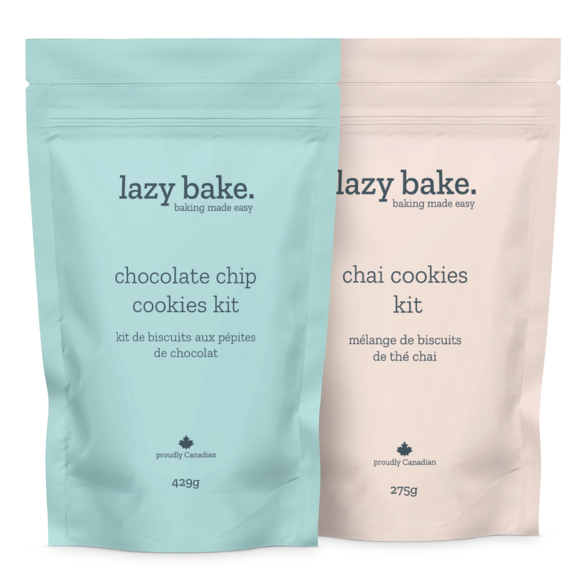 Lazy Bake Gourmet Cookie Mix Combo Pack. Chocolate Chip Cookie Mix and Chai Cookie Mix. Create Soft & Chewy Cookies at Home. Dessert And Snacks For Kids. Made in Canada. (Pack of 2) Chocolate Chip Cookie & Chai Cookie (Pack of 2)