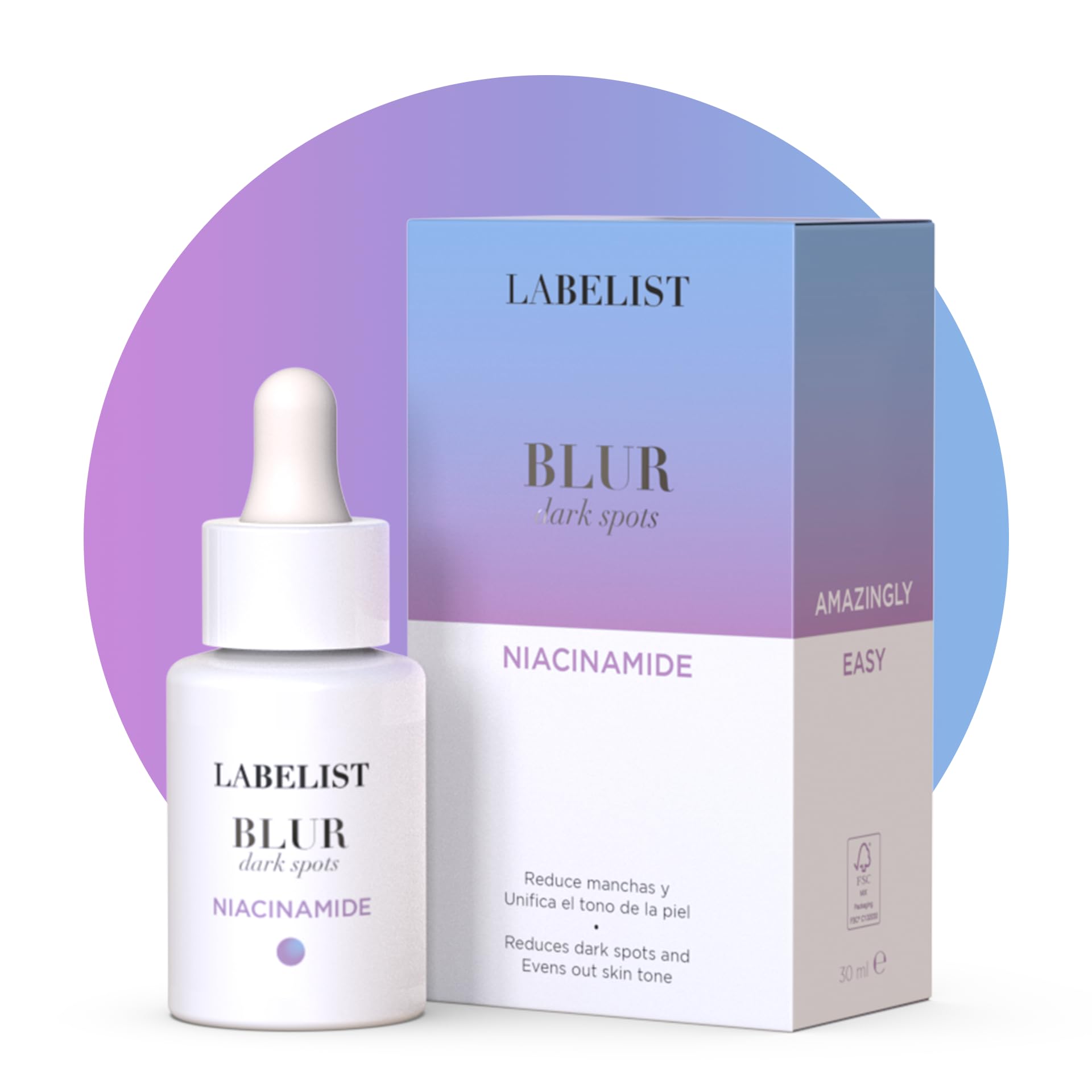 Labelist - Blur Elixir Facial Labelist Blur Elixir is perfect for deeply hydrating and reducing blemishes and blemishes. Thanks to the high percentage of B Vitamins (between Niacinamide and Panthenol, more than 15 ) the tone is even, achieving a luminous and radiant skin. FEATURES: Suitable for all skin types, even sensitive skin. Daily use at night and in the day for 3 months. Non-greasy texture. Weight: 30 ml. Made in Spain. INGREDIENTS: Niacidamine (vitamin B3): 13 . Antioxidant, moisturizing, protective, illuminating and anti-stain. Helps increase protein synthesis (collagen, elastin) and fights the signs of aging. Panthenol (vitamin B5): 5 . Hydrates, soothes and restores elasticity to the skin. PH: 5.0 - 5.5 HOW TO USE: Steps: 1. With clean skin, apply 2 or 3 drops of this facial serum to your fingertips and spread over the face , neck and décolleté avoiding the eye contour (it is important that the pipette does not come into contact with the skin to avoid possible contamination of the product). 2. Once absorbed, apply your regular moisturizer to complete your facial beauty and care routine. ( ) Tip: Apply the treatment keeping your fingers flat and gently pressing the face with wavy movements. Conservation. Store below 40 C.✓ WITH YOU AND THE ENVIRONMENT: Labelist formulates cosmetics focused on the active ingredients seeking maximum product efficiency with minimal impact on the skin. Not tested in animals, without silicones, without parabens, without formaldehydes, without SLS or SLES, without phthalates or hydroquinone. ✓ VISIBLE AND IMMEDIATE RESULTS: "Skin has memory" is somewhat true. Therefore, it is very important that you choose professional and quality products that help your skin and fulfill what they promise. Our face care products combat any skin disorder and boost skin strengths in record time. ✓ SILK AND LIGHT texture: with pleasant floral aroma and rapid absorption. Our vitamin B3 and B5 serum has a powerful antioxidant capacity. Moisturizes, softens and brightens the skin, controls fat and improves the appearance of enlarged pores. Blur Elixir reduces the appearance of dark spots. It's a powerful woman's facial serum!. ✓ CONCENTRATED FACIAL SERUM: Perfect for a skin of 10. It deeply moisturizes the skin, illuminating it and unifying its tone by reducing stains and pores. Contains 13 Niacinamide and 5 Panthenol. Get a porcelain skin, symbol of beauty and glamour. It's perfect for use before bedtime!. ✓ CONCENTRATED FACIAL SERUM: Perfect for a skin of 10. It deeply moisturizes the skin, illuminating it and unifying its tone by reducing stains and pores. Contains 13 Niacinamide and 5 Panthenol. Get a porcelain skin, symbol of beauty and glamour. It's perfect for use before bedtime!.Labelist Blur Elixir Facial Serum 30 ml Reduces Stains Unify the Tone Minimize Pores Niacinamide and Panthenol Women's Facial Care Labelist - Blur Elixir Facial Labelist Blur Elixir is perfect for deeply hydrating and reducing blemishes and blemishes. Thanks to the high percentage of B Vitamins (between Niacinamide and Panthenol, more than 15 ) the tone is even, achieving a luminous and radiant skin. FEATURES: Suitable for all skin types, even sensitive skin. Daily use at night and in the day for 3 months. Non-greasy texture. Weight: 30 ml. Made in Spain. INGREDIENTS: Niacidamine (vitamin B3): 13 . Antioxidant, moisturizing, protective, illuminating and anti-stain. Helps increase protein synthesis (collagen, elastin) and fights the signs of aging. Panthenol (vitamin B5): 5 . Hydrates, soothes and restores elasticity to the skin. PH: 5.0 - 5.5 HOW TO USE: Steps: 1. With clean skin, apply 2 or 3 drops of this facial serum to your fingertips and spread over the face , neck and décolleté avoiding the eye contour (it is important that the pipette does not come into contact with the skin to avoid possible contamination of the product). 2. Once absorbed, apply your regular moisturizer to complete your facial beauty and care routine. ( ) Tip: Apply the treatment keeping your fingers flat and gently pressing the face with wavy movements. Conservation. Store below 40 C.✓ WITH YOU AND THE ENVIRONMENT: Labelist formulates cosmetics focused on the active ingredients seeking maximum product efficiency with minimal impact on the skin. Not tested in animals, without silicones, without parabens, without formaldehydes, without SLS or SLES, without phthalates or hydroquinone. ✓ VISIBLE AND IMMEDIATE RESULTS: "Skin has memory" is somewhat true. Therefore, it is very important that you choose professional and quality products that help your skin and fulfill what they promise. Our face care products combat any skin disorder and boost skin strengths in record time. ✓ SILK AND LIGHT texture: with pleasant floral aroma and rapid absorption. Our vitamin B3 and B5 serum has a powerful antioxidant capacity. Moisturizes, softens and brightens the skin, controls fat and improves the appearance of enlarged pores. Blur Elixir reduces the appearance of dark spots. It's a powerful woman's facial serum!. ✓ CONCENTRATED FACIAL SERUM: Perfect for a skin of 10. It deeply moisturizes the skin, illuminating it and unifying its tone by reducing stains and pores. Contains 13 Niacinamide and 5 Panthenol. Get a porcelain skin, symbol of beauty and glamour. It's perfect for use before bedtime!. ✓ CONCENTRATED FACIAL SERUM: Perfect for a skin of 10. It deeply moisturizes the skin, illuminating it and unifying its tone by reducing stains and pores. Contains 13 Niacinamide and 5 Panthenol. Get a porcelain skin, symbol of beauty and glamour. It's perfect for use before bedtime!.
