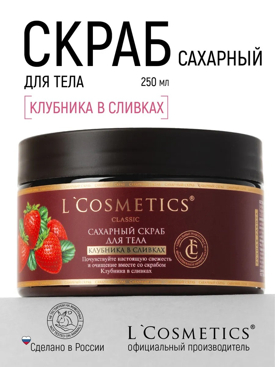LCosmetics представляет ваш незаменимый помощник в уходе за кожей – антицеллюлитный сахарный скраб для тела «Клубника в сливках» с экстрактом клубники и маслом сладкого миндаля. Этот продукт, созданный специально для достижения упругости и эластичности кожи, станет идеальным дополнением к вашим косметическим ритуалам.