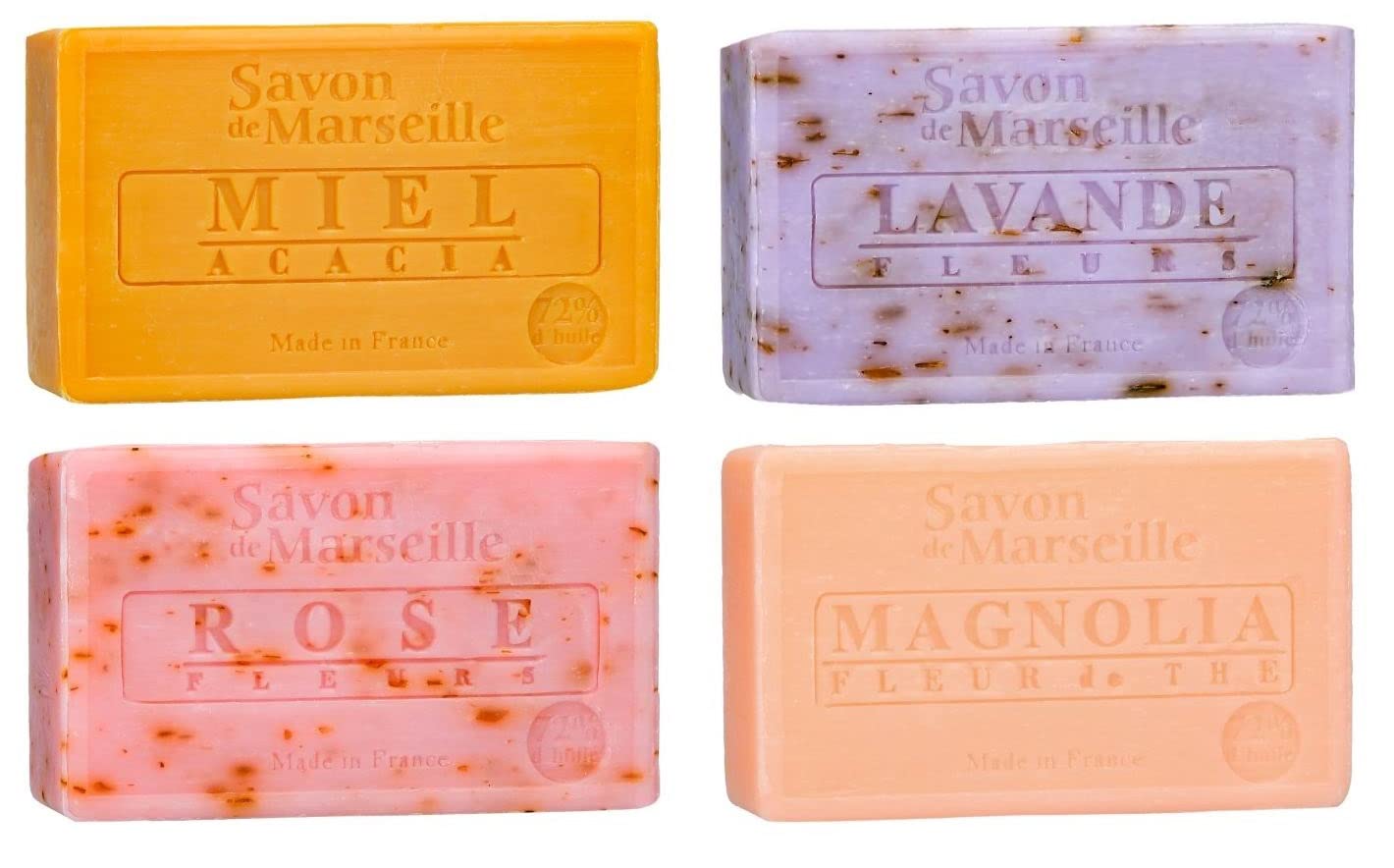 Le Chatelard 1802 Marseille soap 4 x 100 grams in scents honeylavenderrosemagnolia