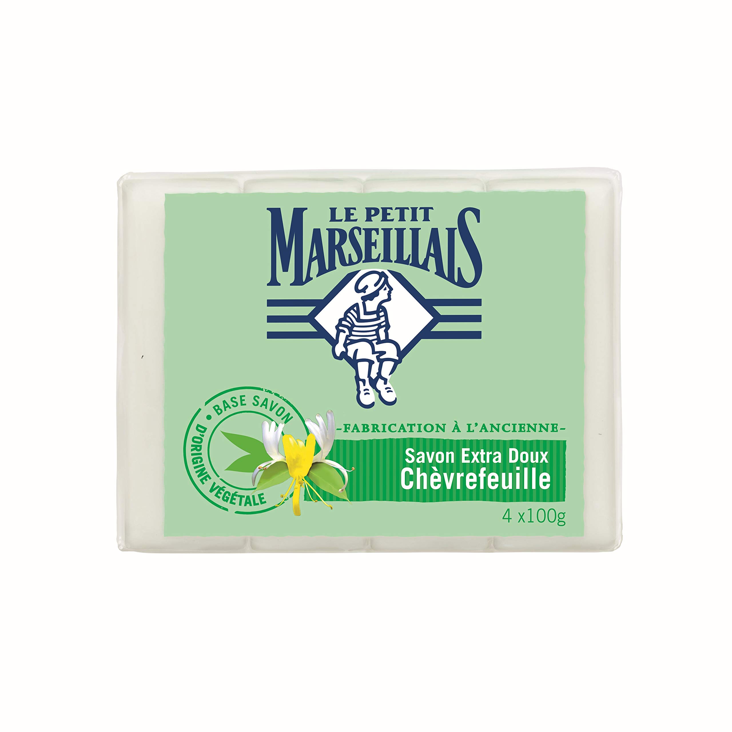 Le Petit Marseillais Savon Solide Chèvrefeuille - Action Antibactérienne - 4x100g - Lot de 5
