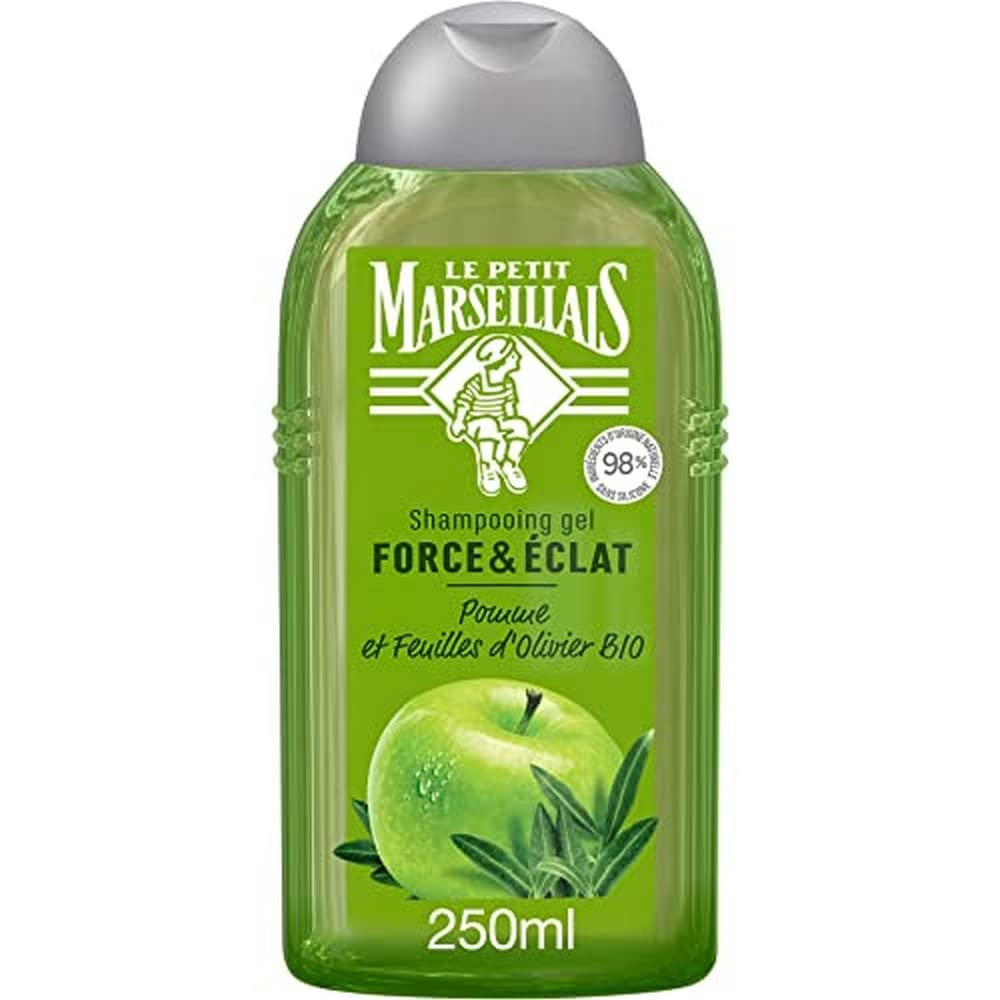 Le Petit Marseillais Strength Shine Shampoo with Organic Apple Olive For radiant health, your hair needs tone and vitality. With our Strength Shine revitalizing shampoo, it is protected, strengthened, and shiny. To bring all the radiance of the sun to your hair, Le Petit Marseillais has developed an invigorating shampoo that strengthens and revitalizes your hair from the roots. The formula of our natural shampoo is enriched with apple, a vitamin-rich fruit with protective properties, and organic olive leaves with detoxifying power. This organic shampoo is composed of 98 naturally derived ingredients and 96 biodegradable ingredients. Silicone-free for a natural feel. Dermatologically tested. Directions for use: Its gel texture transforms into a lather with fresh and fruity notes. Apply to all of your hair, gently massage the scalp, then rinse. Product benefits at a glance: Strength shine shampoo Organic apple and olive 98 naturally derived ingredients Silicone-free 96 biodegradable ingredients Dermatologically tested 250 ml bottle INGREDIENTS Aqua, ammonium lauryl sulfate, glycerin, cocamidopropyl betaine, pyrus malus fruit extract, olea europaea leaf extract, hydroxypropyl guar hydroxypropyltrimonium chloride, coco glucoside, hydrogenated palm glycerides citrate, glyceryl oleate, lecithin, sodium chloride, citric acid, tocopherol, ascorbyl palmitate, potassium sorbate, sodium benzoate, parfum. DIRECTIONS Apply to wet hair, massage, and rinse thoroughly. See morePractical details: 250ml bottle. Its gel texture transforms into a foam with fresh, fruity notes. Apply to all of your hair, gently massage the scalp, then rinse. Natural formula: This organic shampoo is composed of 98 naturally derived ingredients and 96 biodegradable ingredients. Silicone-free for a natural feel. Dermatologically tested. Apple organic olive leaves: The formula of our natural shampoo is enriched with apple, a vitamin-rich fruit with protective properties, and organic olive leaves with detoxifying power. Invigorating recipe: To bring all the radiance of the sun to your hair, Le Petit Marseillais has developed an invigorating shampoo that strengthens and revitalizes your hair from the roots. Strength shine: To be radiantly healthy, your hair needs tone and vitality. With our Strength Shine revitalizing shampoo, it is protected, fortified, and shiny.Le Petit Marseillais Shampooing Force Éclat Pomme Olivier Bio (flacon de 250 ml) – Shampoing brillance optimale pour tous types de cheveux – 98 d'ingrédients d'origine naturelle Pomme BIO Feuille d'Olivier BIODESCRIPTION DU PRODUIT DESCRIPTION DU PRODUIT Le Petit Marseillais Shampooing Force Éclat Pomme Olivier Bio Pour être éclatants de santé, vos cheveux ont besoin de tonus et de vitalité. Avec notre shampoing revitalisant Force Éclat, ils sont protégés, fortifiés et brillants. Pour apporter tout l'éclat du soleil dans vos cheveux, Le Petit Marseillais a développé un shampoing vivifiant qui renforce et revitalise vos cheveux dès la racine. La forme de notre shampoing naturel est enrichi en pomme, un fruit vitaminé aux propriétés protectrices, et feuilles d'olivier bio au pouvoir détoxifiant. Ce shampoing bio est composé d'ingrédients d'origine naturelle à 98 et biodégradables à 96 . Sans silicone pour un toucher naturel. Testé sous contrôle dermatologique. Conseils d'utilisation : Sa texture gel se transforme en une mousse aux notes fraîches et fruitées. Appliquez sur l'ensemble des cheveux, massez délicatement le cuir chevelu puis rincez. Les avantages du produit en un coup d'œil : Shampoing force éclat Pomme et olivier bio 98 d'ingrédients d'origine naturelle Sans silicone 96 d'ingrédients biodégradables Testé sous contrôle dermatologique Flacon de 250 ml INGRÉDIENTS Aqua, ammonium lauryl sulfate, glycerin, cocamidopropyl betaine, pyrus malus fruit extract, olea europaea leaf extract, hydroxypropyl guar hydroxypropyltrimonium chloride, coco glucoside, hydrogenated palm glycerides citrate, glyceryl oleate, lecithin, sodium chloride, citric acid, tocopherol, ascorbyl palmitate, potassium sorbate, sodium benzoate, parfum. MODE D'EMPLOI Appliquer sur cheveux mouillés, masser et rincer abondamment. Voir plusDétails pratiques : Flacon de 250 ml. Sa texture gel se transforme en une mousse aux notes fraîches et fruitées. Appliquez sur l'ensemble des cheveux, massez délicatement le cuir chevelu puis rincez. Formule naturelle : Ce shampoing bio est composé d'ingrédients d'origine naturelle à 98 et biodégradables à 96 . Sans silicone pour un toucher naturel. Testé sous contrôle dermatologique. Pomme feuilles d'olivier bio : La formule de notre shampoing naturel est enrichie en pomme, un fruit vitaminé aux propriétés protectrices, et en feuilles d'olivier bio au pouvoir détoxifiant. Recette vivifiante : Pour apporter tout l'éclat du soleil dans vos cheveux, Le Petit Marseillais a développé un shampoing vivifiant qui renforce et revitalise vos cheveux dès la racine. Force éclat : Pour être éclatants de santé, vos cheveux ont besoin de tonus et de vitalité. Avec notre shampoing revitalisant Force Éclat, ils sont protégés, fortifiés et brillants.