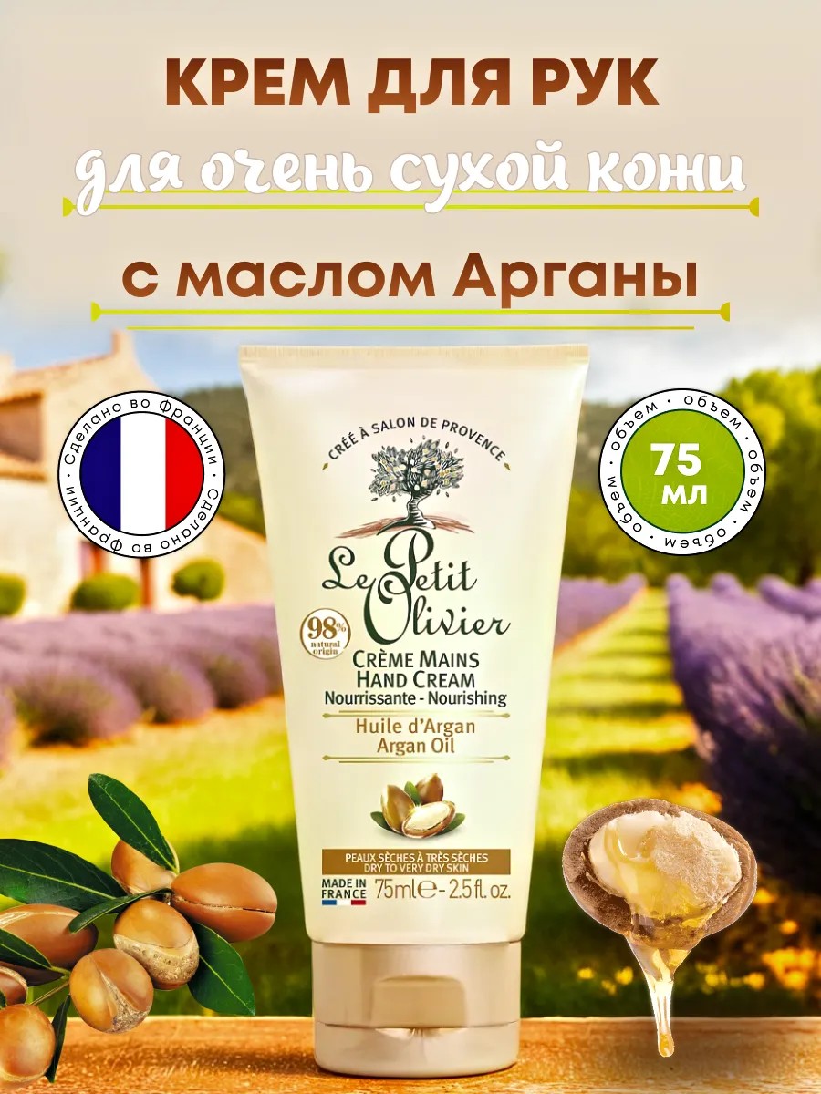 Попробуйте крем для кожи рук и ногтей с маслом арганы бренда французской профессиональной косметики Le Petite Olivier 75 мл. Этот софт флюид восстанавливает и увлажняет даже очень сухую кожу, даря мягкость, гладкость и здоровье, защищает ее от потери влаги, укрепляет ногти и смягчает кутикулу. Снимает ощущение стянутости и дискомфорта. Может также использоваться для ног и для других участков тела. Обогащен натуральными маслами, которые интенсивно питают и делают руки бархатными на ощупь. SOS Средство создает защитный барьер от воздействия извне; проникает в каждую клеточку, напитывая её витаминами; восстанавливает гидролипидный слой даже при обезвоженности; расслабляет и тонизирует, успокаивает и дарит эластичность; устраняет шершавости, покраснения и обеспечивает бережный уход. Легко впитывается, не оставляя липкой пленки и не загрязняя поры. В его составе множество растительных компонентов и трав для красоты. Подходит для всех типов кожи, будь то молодая подростковая, либо сухая зрелая, уже склонная к появлению морщин и возрастных изменений. Используйте после принятия душа или ванной, в машине или в офисе. Подходит для проведения расслабляющего массажа кистей на завершающем этапе SPA-маникюра и для ежедневного ухода. Делает кожу визуально сияющей, свежей и молодой, предотвращая ее старение, отбеливает и осветляет пигментные и возрастные пятна. Не вызывает раздражений и аллергических реакций. Активизирует регенерацию эпидермиса, несмотря на плотную текстуру быстро впитывается. Незаменим в холодной суровое время года зимой, при морозе и ветре. Состоит на 98% из ингредиентов натурального происхождения. С ненавязчивым парфюмированным ароматом. Удобный дозатор обеспечивает экономичный расход. Универсальный запах женский и мужской одновременно, унисекс и подойдет для всей семьи. Флакон со стильным дизайном будет отлично смотрется в интерьере вашей ванной и подойдет в качестве новогоднего подарка. Без силикона, создан в Салон де Прованс Франция.