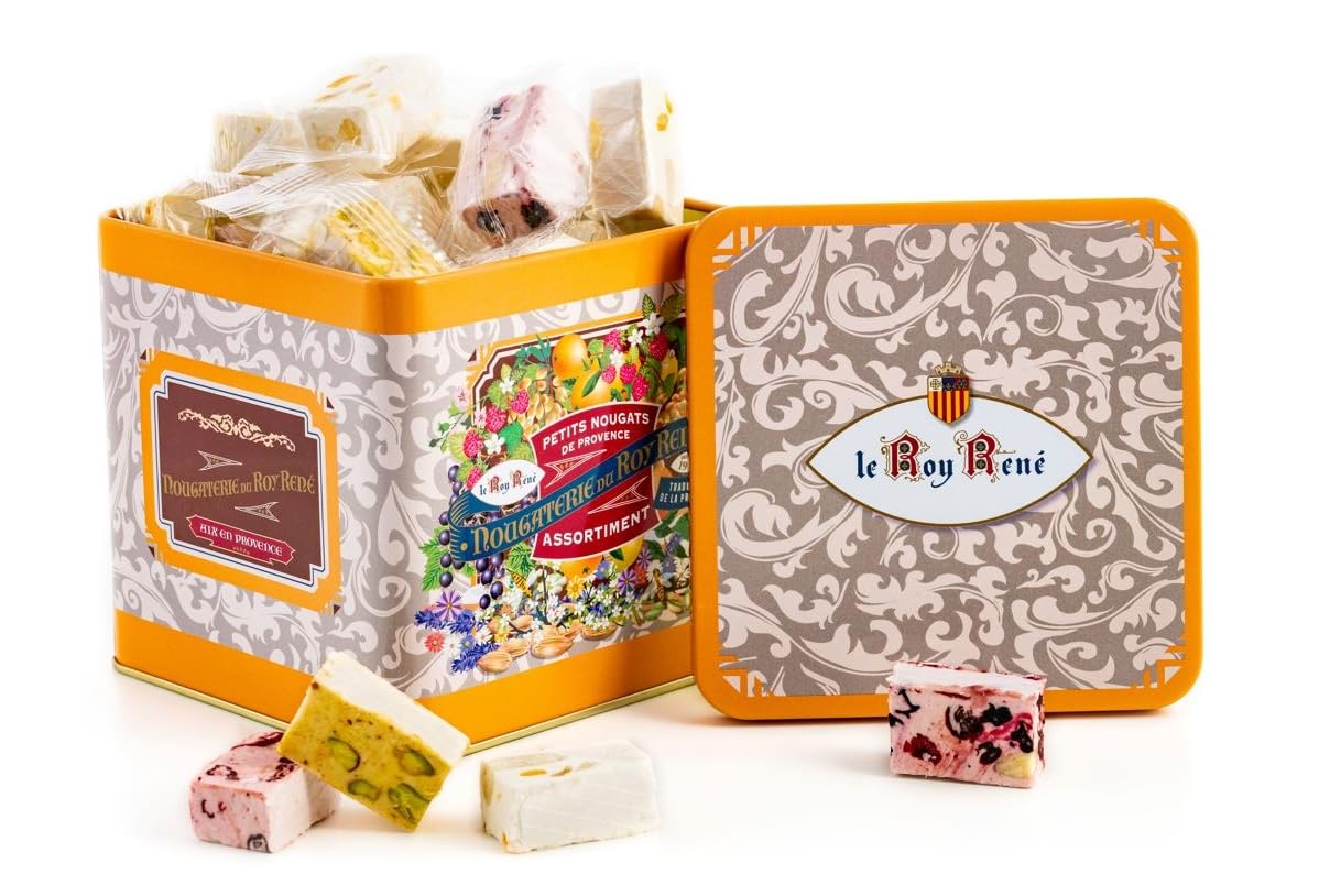ROY RENE - an exceptional product - part of the Fine Food Boutique range, not available in supermarkets. Roy René Nougat: Discover an assortment of small nougats that have made the Roy René nougat makers famous. This gift box contains White Nougat from Provence, Red Berry Nougat, Citrus Nougat, and Pistachio Nougat. Classics of Provençal confectionery, Roy René nougats are the result of expertise passed down for nearly 100 years. Traditional white nougat, dark nougat from Provence, candied fruits and fruit pieces. all these ingredients are carefully selected and cooked in a cauldron, using the same precise and meticulous techniques, repeated for decades. Roy René Nougat: This essential Provençal confectionery is at the heart of Roy René's business. A know-how that continues today with a unique recipe. Dried fruit, lavender honey from Provence, candied fruit from Apt. the ingredients are carefully selected before being cooked in a copper cauldron. Store away from heat and humidity. Founded in 1920 in Aix-en-Provence, Le Roy René is a family business specializing in Provençal confectionery. Now a century old, Maison Le Roy René has stood the test of time, perpetuating its expertise and the purity of its techniques. Le Roy René has always crafted its sweets using exceptional, meticulously selected raw materials. Let yourself be transported on a unique Provençal journey. Le Roy René is committed to supporting the Act For Planet association. Since 2019, Act for Planet has been working locally to combat the effects of climate change and its devastating impact on biodiversity. INGREDIENTS Sugar, glucose syrup, almonds, Provence IGP lavender honey 7 , pistachios 5 , maritime lavender honey, candied fruit 3 (orange and lemon peel 56 , glucose-fructose syrup, sugar), honey, powdered egg white, dried blackcurrants infused with apple juice 2 (blackcurrants 53 , apple juice concentrate, lemon juice concentrate, sunflower oil), sweetened dried cranberries 1.5 (cranberries 54 , sugar, sunflower oil), pistachio paste 1.3 , unleavened bread (potato starch, water, olive oil), sweetened raspberry puree 0.9 (raspberries 85 , invert sugar syrup), concentrated raspberry juice 0.1 , natural vanilla flavoring, bitter almond extract. INSTRUCTIONS FOR USE Store at room temperature in a cool, dry place. This product is sensitive to variations in temperature and humidity. See moreLE ROY RENÉ Epicerie Fine - Nougaterie du Roy René. Nougat (.) (Petits nougats - Boite métal tradition 230g.)DESCRIPTION DU PRODUIT DESCRIPTION DU PRODUIT LE ROY RENE - produit d'exception - gamme Boutique Epicerie Fine, non disponible en grandes surfaces. Le nougat du Roy René : Découvrez un assortiment de petits nougats qui font la renommée du savoir-faire des nougatiers du Roy René. Coffret composé de Nougat Blanc de Provence, Nougat aux Fruits Rouges, Nougat Agrumes et Nougat Pistache. Classiques de la confiserie provençale, les nougats du Roy René sont issus du savoir-faire perpétué depuis près de 100 ans. Nougat blanc tradition, nougat noir de Provence, fruits confits et pépites de fruits, . autant d'ingrédients savamment sélectionnés et cuits au chaudron, avec les mêmes gestes précis et soigneux, répétés depuis des décennies. Le nougat du Roy René : Cet incontournable de la confiserie provençale fait partie du cœur de métier du Roy René. Un savoir-faire qui se perpétue aujourd'hui avec une recette unique. Fruits secs, miel de lavande de Provence, fruits confits d'Apt . les ingrédients sont soigneusement sélectionnés avant de cuire dans un chaudron de cuivre. À conserver à l'abri de la chaleur et de l'humidité. Créée en 1920 à Aix-en-Provence, Le Roy René est une entreprise familiale, spécialisée dans la confection de confiseries provençales. Aujourd'hui centenaire, la Maison Le Roy René a traversé les époques en perpétuant ses savoir-faire, et la pureté de ses gestes. Depuis toujours, Le Roy René confectionne ses douceurs à l'aide de matières premières d'exception, sélectionnées méticuleusement. Laissez-vous transporter dans un voyage provençal unique. Le Roy René s'engage auprès de l'association Act For Planet. Depuis 2019, l'association Act for Planet agit localement pour lutter contre les effets du réchauffement climatique et ses effets dévastateurs sur la biodiversité. INGRÉDIENTS Sucre, sirop de glucose, amandes, miel de lavande Provence IGP 7 , pistaches 5 , miel de lavande maritime, fruits confits 3 (écorces d'orange et de citron 56 , sirop de glucose-fructose, sucre), miel, blanc d'oeuf en poudre, cassis séché infusé au jus de pomme 2 (cassis 53 , concentré de jus de pomme, concentré de jus de citron, huile de tournesol), canneberges séchées sucrées 1,5 (canneberges 54 , sucre, huile de tournesol), pâte de pistache 1,3 , pain azyme (fécule de pomme de terre, eau, huile d'olive), purée de framboise sucrée 0,9 (framboise 85 , sirop de sucre inverti), jus concentré de framboise 0,1 , arôme naturel de vanille, extrait d'amande amère. MODE D'EMPLOI Conserver à température ambiante dans un endroit frais et sec. Produit sensible aux variations de température et d'humidité. Voir plus
