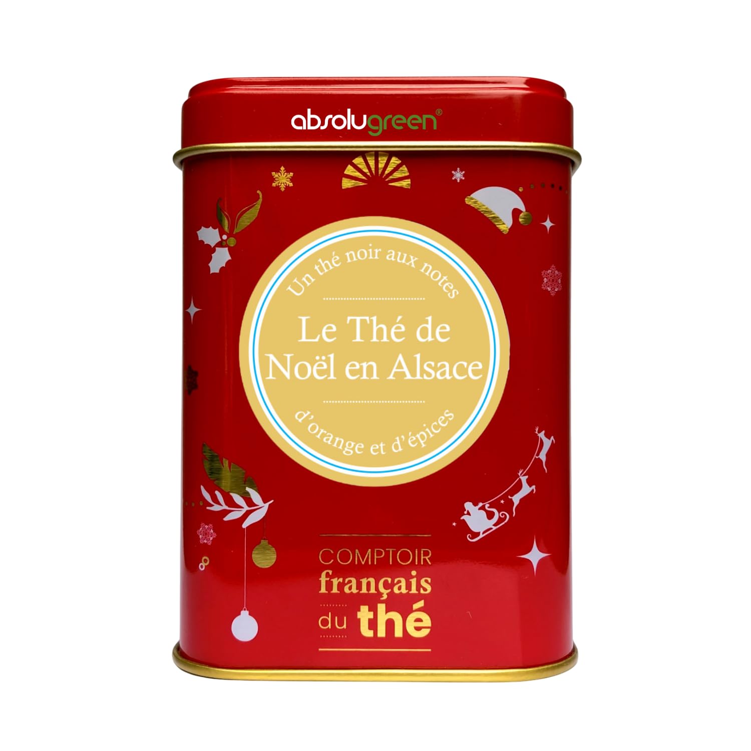 Le Thé de Noël en Alsace – Comptoir Français du Thé – Boîte Métal 80g – Noir Festif aux Notes d'Orange d'Épices – Mélange Traditionnel et Gourmand, Idéal pour les Fêtes de Fin d'Année