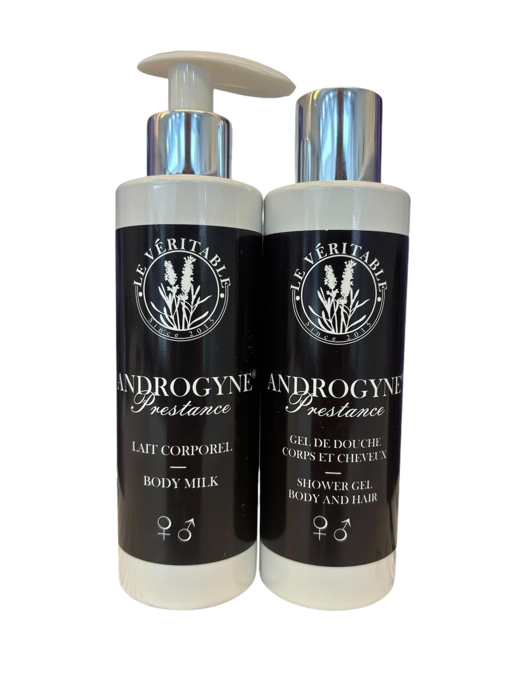 Discover the Androgyne Prestance body care duo from Le Véritable, a perfect combination for your daily skincare routine. This elegant set includes a nourishing body lotion and a body and hair shower gel, each in a generous 200ml size. The unique formula contains 10 organic whole donkey milk, enriched with organic argan oil, almond oil, jojoba oil, aloe vera, echinacea, and calendula. Free from artificial fragrance, these products are suitable for all skin types, even the most sensitive. The versatile shower gel effectively cleanses the body and hair, while the body lotion moisturizes and soothes the skin. The natural, paraben-free formula offers complete care for the whole family. These unisex products are made in France with carefully selected ingredients. The elegant black and white packaging reflects the sophistication of the Androgyne range. For best results, use the shower gel during your shower, followed by the body lotion for optimal hydration. Ingredients: Argan oil, aloe vera, sweet almond oil, jojoba oil, echinacea, calendula, vegetable glycerin. SAFETY WARNING For external use only. Avoid contact with eyes. In case of contact with eyes, rinse thoroughly with clean water.MADE IN FRANCE: Product manufactured in France with high-quality natural ingredients, presented in elegant packaging. FRAGRANCE-FREE: Gentle formula without parabens or added fragrance, ideal for daily use. VERSATILE: Multi-functional shower gel for body and hair, suitable for all skin types, including sensitive skin. NATURAL FORMULA: Enriched with 10 organic donkey milk, argan oil, sweet almond, jojoba, and aloe vera for soft skin. CARE SET: Elegant duo including a moisturizing body lotion and a body and hair shower gel, totaling 400 ml (2 x 200 ml).Le Véritable Androgyne Prestance, Duo Soin Corps, Lait Corporel et Gel Douche Corps et Cheveux, 200 ml ChacunDESCRIPTION DU PRODUIT DESCRIPTION DU PRODUIT Découvrez le duo de soins corps Androgyne Prestance de Le Véritable, une combinaison parfaite pour votre routine de soin quotidienne. Ce coffret élégant comprend un lait corporel nourrissant et un gel douche corps et cheveux, chacun dans un format généreux de 200 ml. La formule unique contient 10 de lait d'ânesse entier biologique, enrichie en huile d'argan bio, huile d'amande, jojoba, aloe vera, échinacée et calendula. Sans parfum artificiel, ces produits conviennent à tous les types de peau, même les plus sensibles. Le gel douche polyvalent nettoie efficacement le corps et les cheveux, tandis que le lait corporel hydrate et apaise la peau. La formulation naturelle, sans parabènes, offre un soin complet pour toute la famille. Ces produits unisexes sont fabriqués en France avec des ingrédients soigneusement sélectionnés. Le packaging élégant en noir et blanc reflète la sophistication de la gamme Androgyne. Pour de meilleurs résultats, utilisez le gel douche pendant votre toilette, suivi du lait corporel pour une hydratation optimale. Composition: huile d'argan, aloe vera, huile d'amande douce, huile de jojoba, échinasse, calendula, glycérine végétale. AVERTISSEMENT DE SÉCURITÉ Usage externe uniquement. Éviter tout contact avec les yeux. En cas de contact avec les yeux rincer abondament a l'eau claire.FABRICATION FRANÇAISE: Produit fabriqué en France avec des ingrédients naturels de haute qualité, présenté dans un emballage élégant. SANS PARFUM: Formulation délicate sans parabènes et sans parfum ajouté, idéale pour une utilisation quotidienne. POLYVALENT: Gel douche multifonctionnel pour le corps et les cheveux, adapté à tous les types de peau, y compris les peaux sensibles. FORMULE NATURELLE: Enrichi de 10 de lait d'ânesse bio, huile d'argan, amande douce, jojoba et aloe vera pour une peau douce. ENSEMBLE DE SOINS: Duo élégant comprenant un lait corporel hydratant et un gel douche corps et cheveux, totalisant 400 ml (2 x 200 ml).