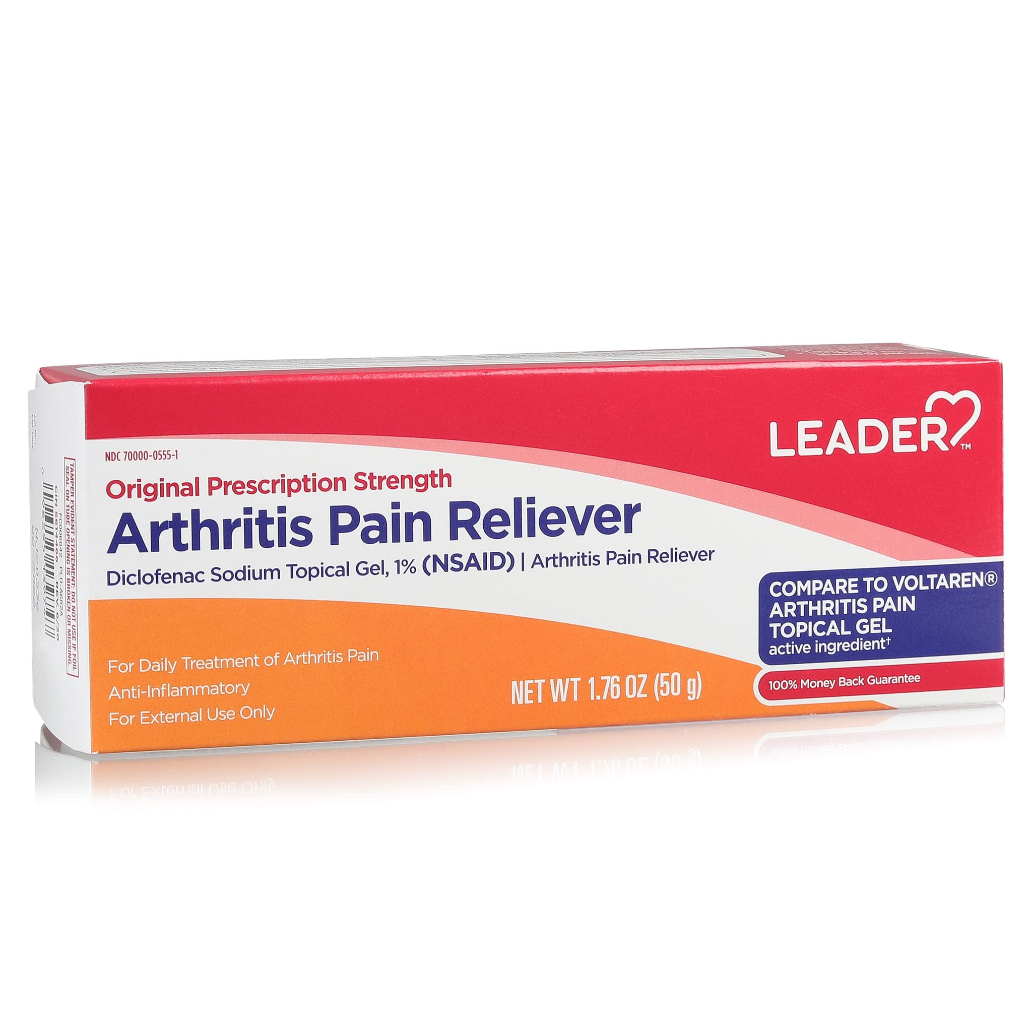 Leader Diclofenac Sodium Topical Pain Relief Gel Tube Find effective relief from joint pain and arthritis with Leader Diclofenac Sodium Topical Pain Relief Gel. This topical gel contains diclofenac sodium, a powerful nonsteroidal anti-inflammatory drug (NSAID), providing targeted relief for various painful conditions, including joint pain and arthritis. Powerful Pain Relief for Joints Don't let joint pain and arthritis limit your mobility. Leader Diclofenac Sodium Topical Pain Relief Gel offers powerful relief specifically for joint pain and arthritis. It effectively reduces inflammation and eases discomfort, allowing you to move more comfortably. Targeted Application for Joint Relief The gel formula allows for precise and targeted application directly to the affected joints. By delivering the active ingredient directly to the site of pain, it provides localized relief, reduces inflammation, and improves joint mobility for maximum effectiveness. Long-Lasting Relief for Arthritis Experience long-lasting relief from arthritis pain with Leader Diclofenac Sodium Topical Pain Relief Gel. The gel is formulated to provide extended relief, reducing pain and inflammation in the joints for hours after application. Enjoy improved joint function and find relief from the limitations of arthritis. Safe and Reliable Leader is a trusted brand for pain relief, ensuring safety and reliability. The diclofenac sodium gel is manufactured with high-quality standards, providing you with a dependable solution for managing joint pain and arthritis. . NDC: 70000-0555-1