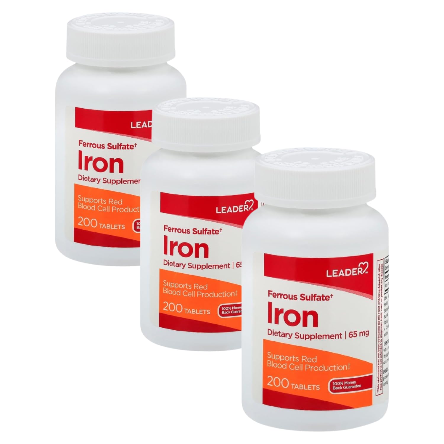 Leader Ferrous Sulfate 65mg Tablets 200ct (Pack of 3)