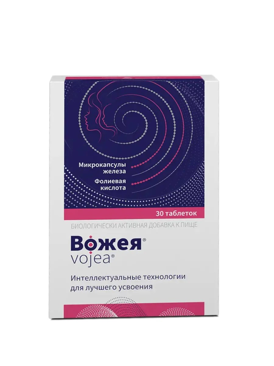ВОЖЕЯ («VOJEA») - Биологически активная добавка (БАД) к пище - это уникальный комплекс пирофосфата железа Lipofer и фолиевой кислоты Quatrefolic.