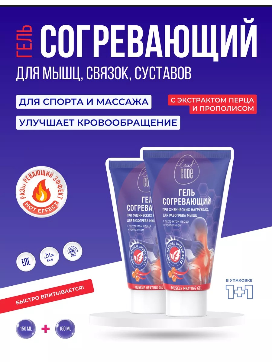 Натуральный спортивный разогревающий гель Leaf Code с экстрактом перца и прополисом идеально подходит для подготовки мышц и связочного аппарата к началу дня и спортивным нагрузкам, защищает от растяжений связок и мышц.
