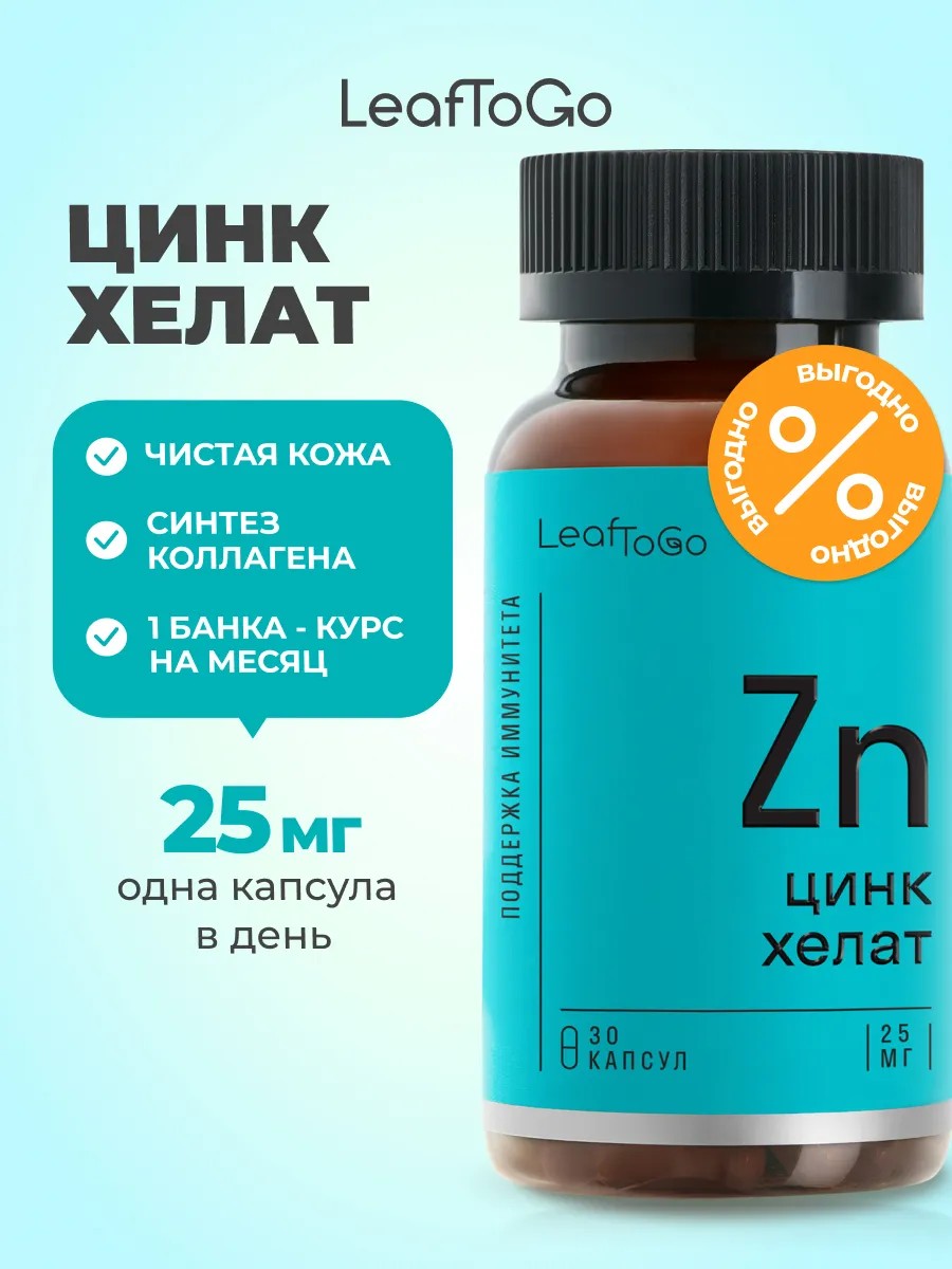 Цинк хелат 25 мг LeafToGo — высокоусвояемый цинк в хелатной форме для красивой кожи, иммунитета и гормонального баланса.