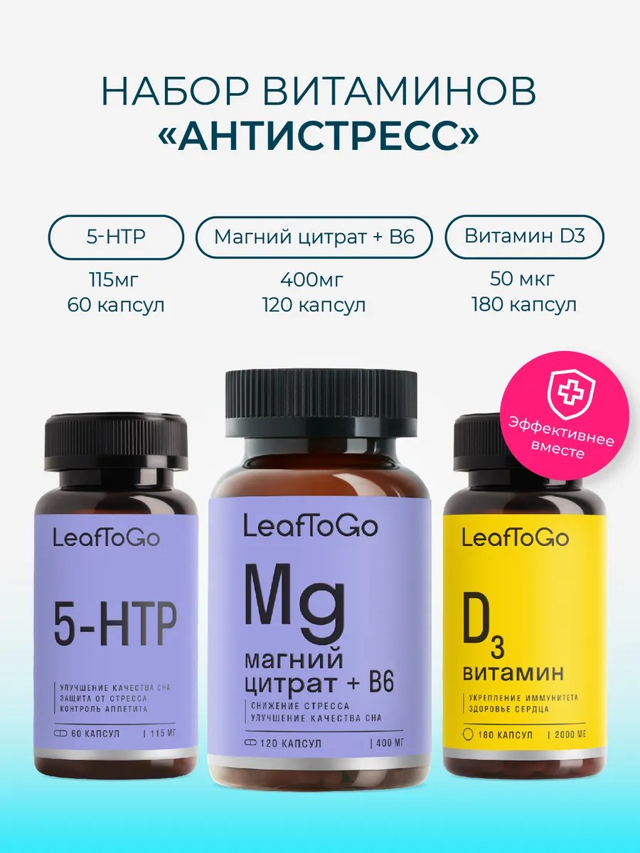 LeafToGo Комплекс витаминов антистресс MG B6 D3 5 htp