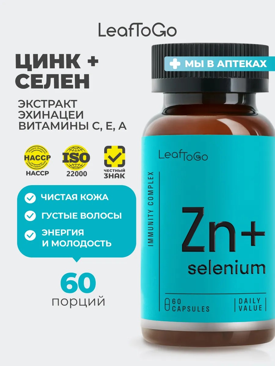 LeafToGo Цинк Cелен ZINC Selenium 60 капсул
