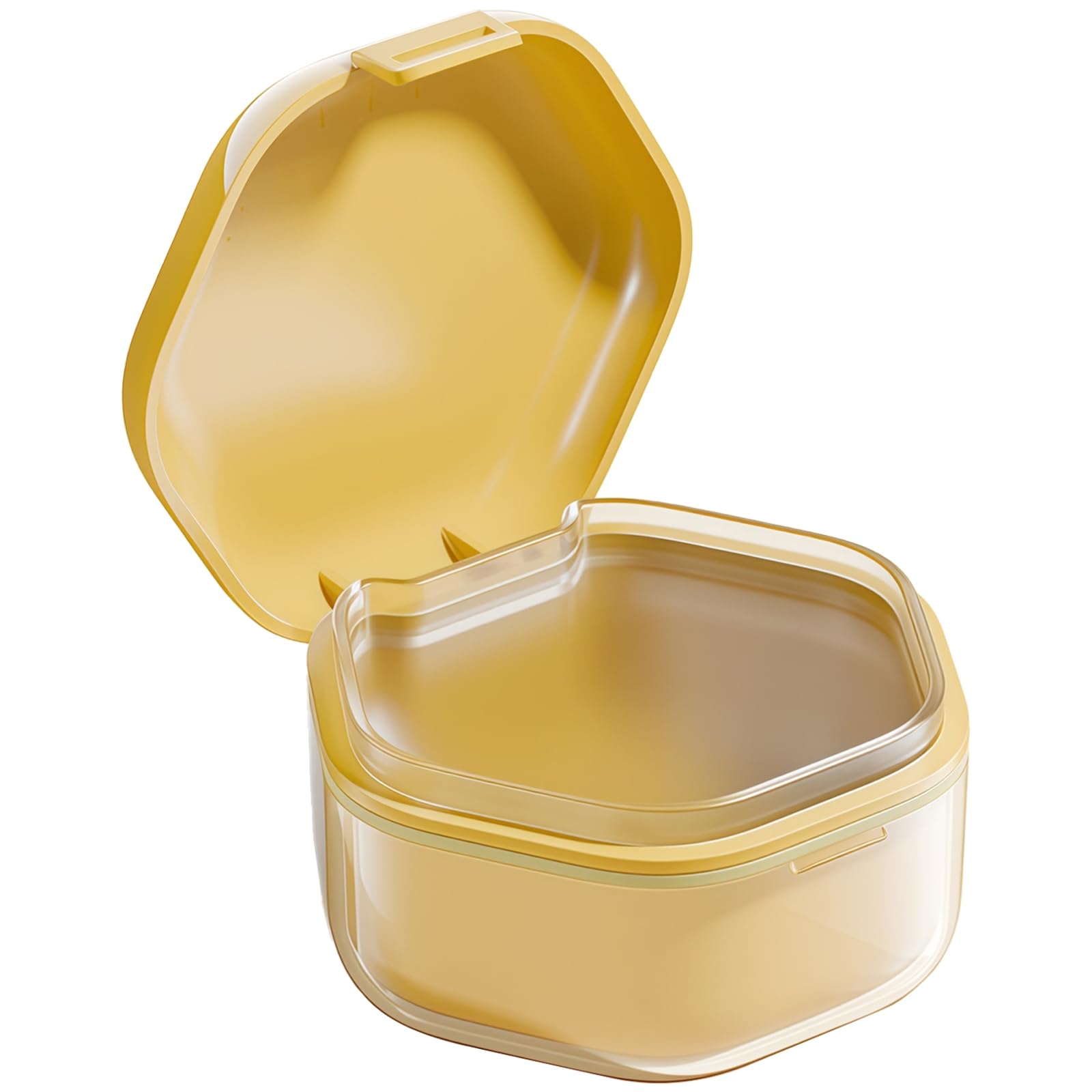 Versatile storage: fits various dental appliances like dentures, retainers, and aligners ensures safe, organized storage. Easy to clean: smooth, non-porous surface rinse with water for quick and easy cleaning. Long-lasting and safe: made from abs, pc, and silicone safe for use with dental appliances. Portable and convenient: compact hexagonal shape easily fits into bags or pockets for travel or everyday use. Secure leak-proof design: keeps liquids from leaking ideal for soaking and cleaning dental devices like dentures and retainers.