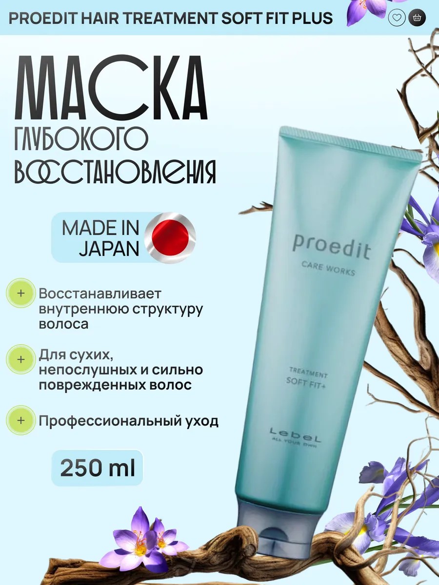 LebeL PROEDIT HAIR TREATM SOFT FIT PLUS Маска для волос, 250мл