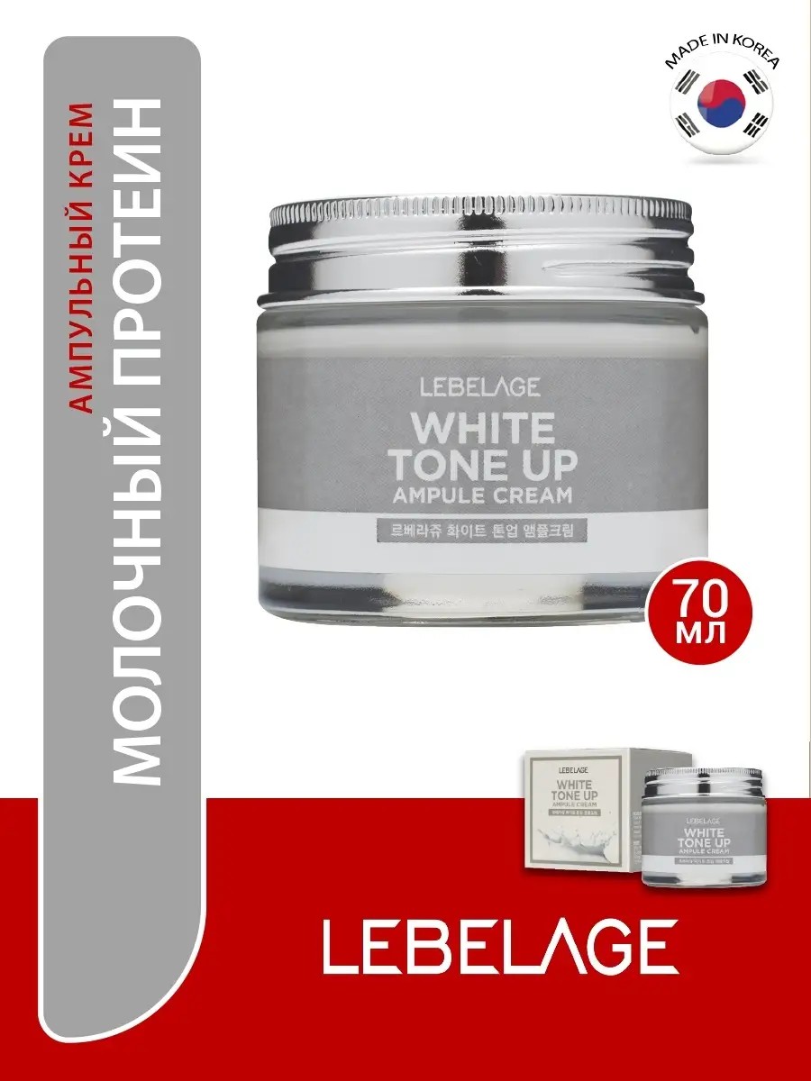 Ампульный увлажняющий крем - сыворотка для лица, шеи и зоны декольте 70 мл. Осветляющий крем включает в себя свойства сразу двух незаменимых в уходе продуктов - сыворотки и крема. Уникальная сыворотка - крем содержит мощную концентрацию активных веществ (как в сыворотках) и обеспечивает прекрасные барьерные свойства (как крем). Средство помогает от пигментных пятен, постакне, покраснений и других несовершенств кожи. Сыворотка оберегает от появления нежелательных изменений и возвращает упругость. Молочные протеины оказывают успокаивающий и смягчающий эффекты на увядающую кожу, они интенсивно питают и увлажняют, способствуют осветлению пигментации. Для всех типов кожи: сухой и нормальной, жирной и проблемной. Питательный крем прекрасно подойдет как дневной и ночной уход, а также под макияж. Идеальный подарок женщине: маме, подруге, девушке на день рождения, новый год, 8 марта и день Святого Валентина. Рекомендуется к использованию в комплексе с серией корейской косметики для ухода за лицом и телом Lebelage.