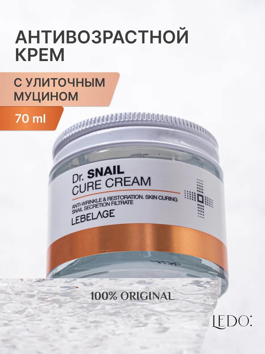 Антивозрастной крем с улиточным муцином Dr. Snail Cure Cream от корейского бренда LEBELAGE выравнивает тон и текстуру кожи, улучшает тонус и эластичность.