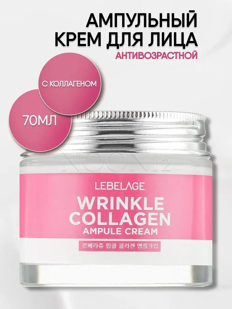 LEBELAGE AMPULE CREAM WRINKLE COLLAGEN 70 мл Крем с коллагеном подходит для ухода за зрелой кожей, а также может применяться для кожи с первыми признаками возрастных изменений. Оказывает многофункциональное действие, интенсивно увлажняя кожу, питая ее и омолаживая. КОЛЛАГЕН- играет важную роль в сохранении молодости и красоты кожи. Белок отвечает за ее гладкость, упругость, прочность и эластичность. Он стабилизирует овал лица и выравнивает его тон. Коллаген также отвечает за регенерацию тканей после их повреждения, ускоряя процессы заживления. ПРИМЕНЕНИЕ: завершающим этапом ухода за кожей нанести крем и распределять легкими похлопывающими движениями до полного впитывания. Использовать утром и/или вечером.