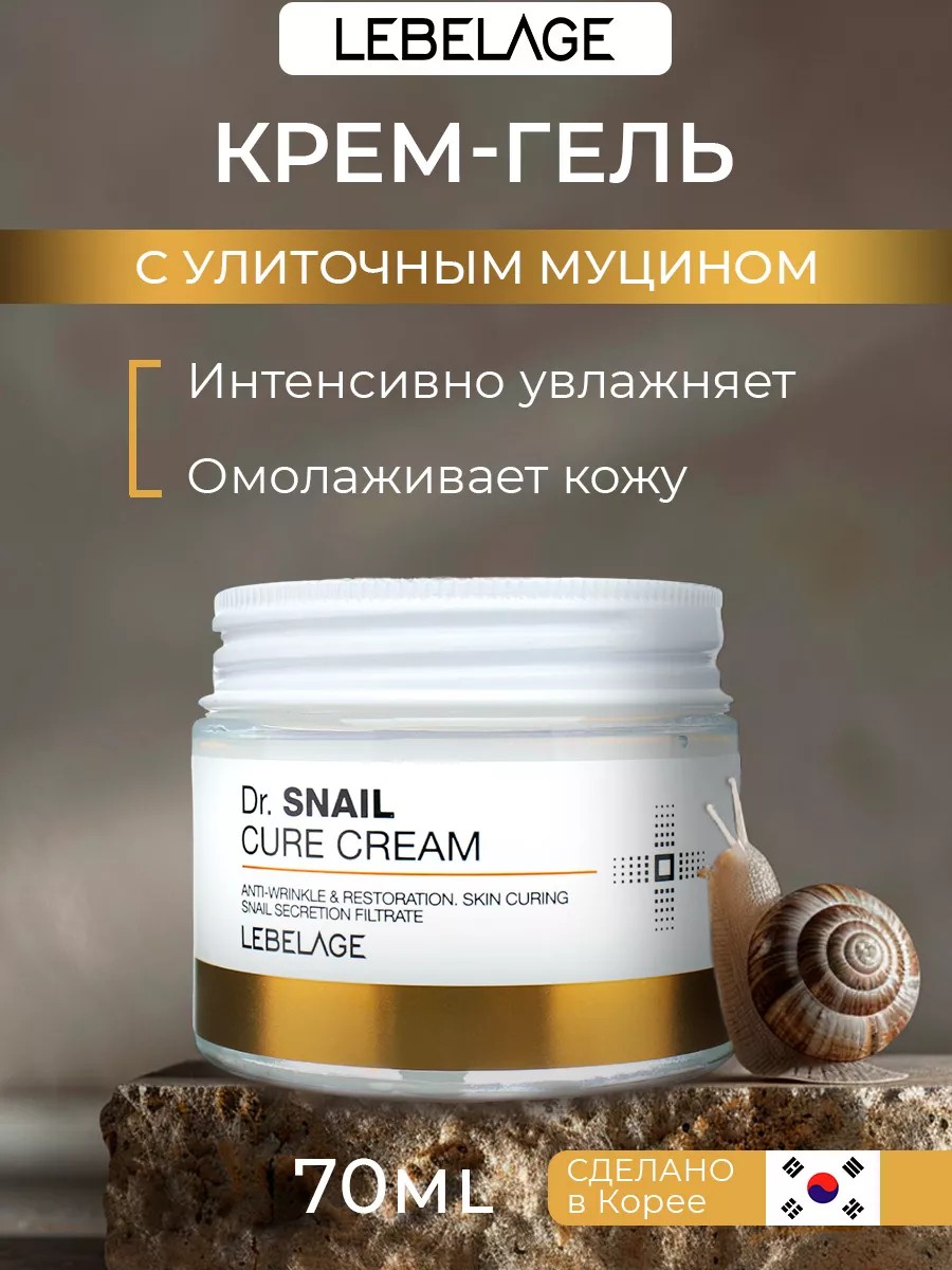 Крем для лица Lebelage ОРИГИНАЛ. Регенерирующий крем-ГЕЛЬ для лица антивозрастной восстанавливающий Lebelage Dr. Snail Cure Cream с экстрактом Улиточного муцина и аллантоином ускоряет обменные процессы, оказывает омолаживающее действие, улучшает цвет лица, выравнивает рельеф, ускоряет заживление рубцов и предотвращает воспаления. Гиалуроновая кислота и аденозин сокращают морщины, способствуют длительному увлажнению, делают кожу гладкой и сияющей.