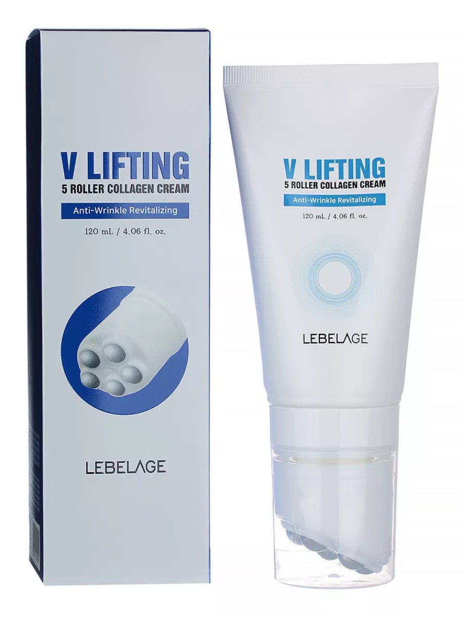 Lebelage Крем-роллер для лица для придания V-линии с коллагеном 120 мл, 1 штука. Подтягивающий роллер-крем с коллагеном увлажняет, улучшает кровообращение и одновременно ухаживает за кожей с помощью 5 массажных роликов. Гидролизованный коллаген способствует выравниванию микрорельефа кожи, разглаживанию морщин, повышению упругости и эластичности. Массажные ролики помогают придать более четкую линию подбородка и лица. Способ применения: 1. Поверните часть с надписью "ON-OFF" в направлении "ON". 2. Выдавите необходимое количество и равномерно распределите. 3. Используя валик, мягко помассируйте тело и дайте ему впитаться. Состав: Water, Butylene Glycol, Glycerin, Caprylic/Capric Triglyceride, Dimethicone, Cetearyl Alcohol, Cyclopentasiloxane, Cyclohexasiloxane, Sorbitan Sesquioleate, Polysorbate 60, Phenoxyethanol, Palmitic Acid, Glyceryl Stearate, PEG-100 Stearate, Carbomer, Triethanolamine, Stearic Acid, Chlorphenesin, Fragrance, Betaine, Allantoin, Adenosine, Disodium EDTA, Linalool, Hydroxycitronellal, Hexyl Cinnamal, Benzyl Salicylate, 1,2-Hexanediol, Hydrolyzed Collagen, Citronellol, Limonene, Vegetable Amino Acids, Proline, Hydroxyproline.