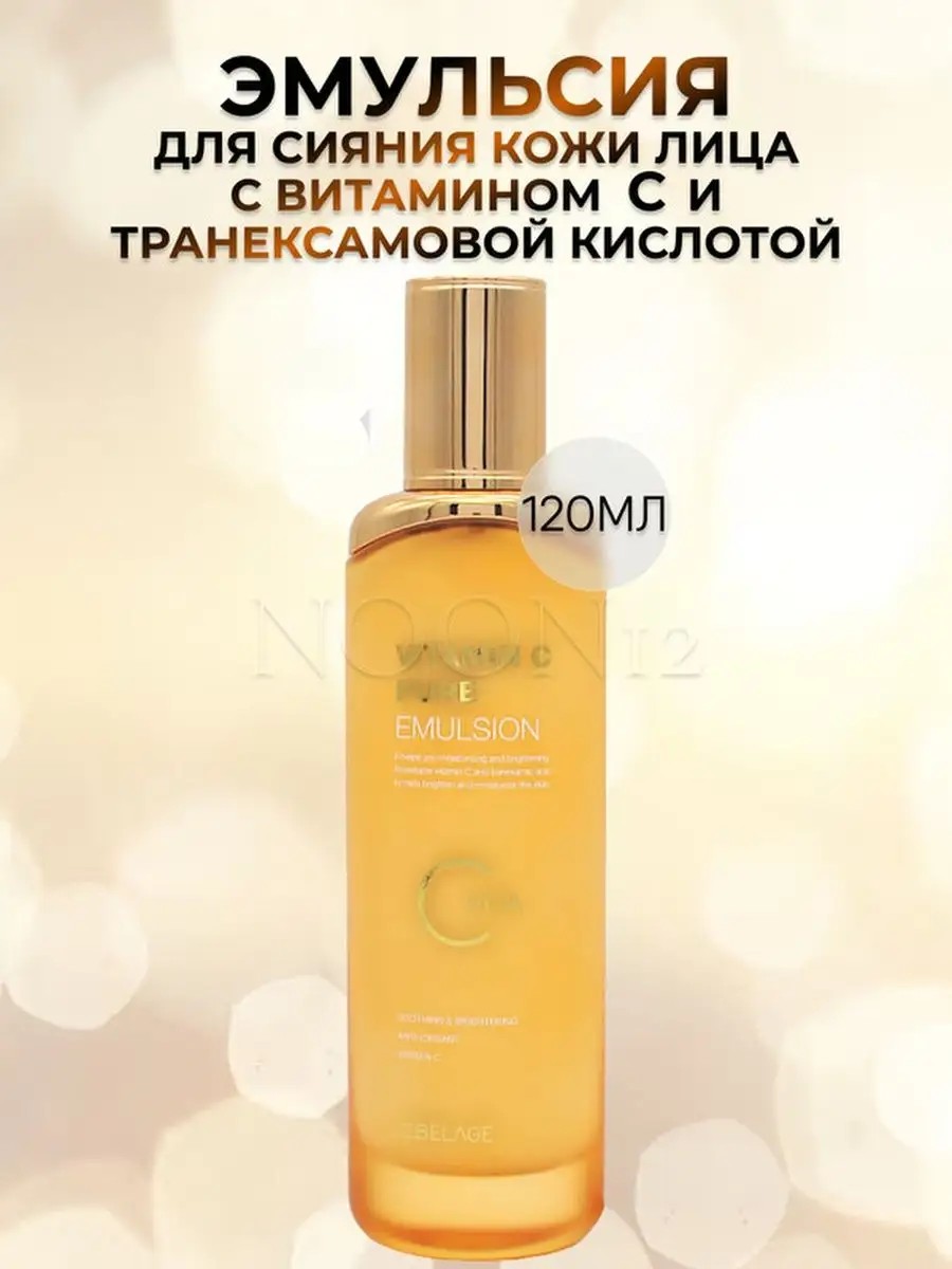 LEBELAGE VITAMIN C PURE EMULSION 120. Эмульсия для лица антивозрастная корея с витамином С и транексамовой кислотой обновляет, смягчает, восстанавливает поврежденную кожу, обладает заметным омолаживающим эффектом. СОСТАВ: Экстракты облепихи и лимона (источники витамина С) - сохраняют молодость и красоту, делают тон кожи ровным и свежим, повышают плотность и упругость. Транексамовая кислота - устраняет тусклый цвет, выравнивает тон кожи и обновляет. ПРИМЕНЕНИЕ: нанести эмульсию легкими круговыми движениями до полного впитывания на очищенную кожу лица и шеи утром и вечером.