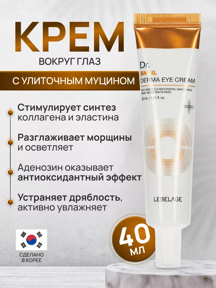 Улиточный муцин продлевает молодость кожи лица. Косметика на основе муцина более всего известна своим антивозрастным действием. Помогает удалить омертвевшие клетки кожи, делая ее гладкой и сияющей. С возрастом выработка нашей кожей коллагена и эластина снижается, что может привести к дряблой и морщинистой коже. Улиточный секрет помогает стимулировать выработку коллагена, в результате чего кожа становится более упругой и молодой. Этот продукт также содержит аденозин, который является мощным антивозрастным компонентом. Это помогает уменьшить появление тонких линий и морщин, в результате чего цвет лица выглядит более свежим. Ежедневно утром и/или вечером наносите питательный крем кончиками пальцев на область контура век легкими похлопывающими движениями до полного впитывания. Позвольте себе профессиональную уходовую косметику из Кореи на каждый день!